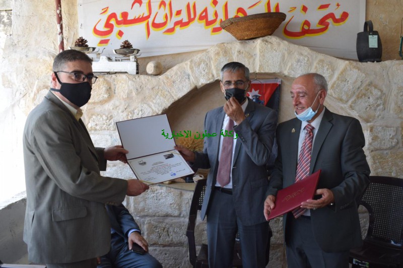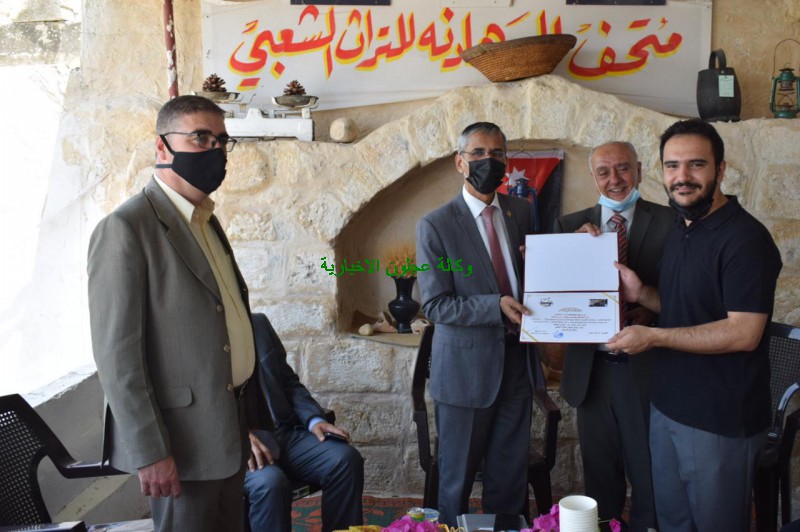 وفي نهاية حفل الإفتتاح الذي أقيم بمناسبة عيد الإستقلال ومئوية الدولة الأردنية قام محافظ عجلون سلمان النجادا ومؤسس المتحف بتكريم الداعمين والمساندين ومدير ثقافة عجلون ووكالة عجلون الاخبارية والتلفزيون الاردني وعدد من الإعلاميين .