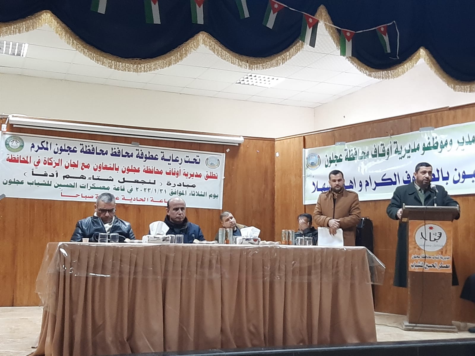 رعى محافظ عجلون الدكتور قبلان الشريف إطلاق مبادرة ” لنجعل شتاءهم ادفأ ” التي نظمتها مديرية الأوقاف بالتعاون مع لجان الزكاة في المحافظة بحضور مدير الأوقاف الدكتور أحمد الصمادي ومدير الشباب محمد طبيشات ومساعدي مدير الأوقاف الدكتور عبد الله الشقاح والدكتور صفوان القضاة ورئيس قسم الزكاة محمد المومني ورؤساء واعضاء لجان الزكاة في المحافظة .