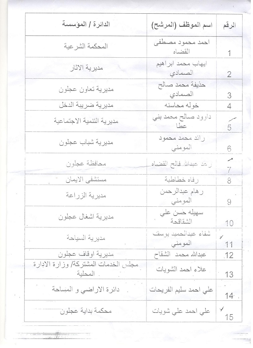 ويشار إلى أن عدد موظفي القطاع ألعام في محافظة عجلون يبلغ 6280 موظفا وموظفة تم ترشيح 27 موظفا للجائزة تميز منهم بعد المقابلات وتطبيق المعايير 5 موظفين ، وساهم الشركاء مجلس المحافظة وبلديات الجنيد والشفا والعيون وجامعة الشرق الأوسط وجامعة عجلون الوطنية في دعم المبادرة الموظف المتميز التي تنطلق لأول دورة في المحافظة لهذا العام .
