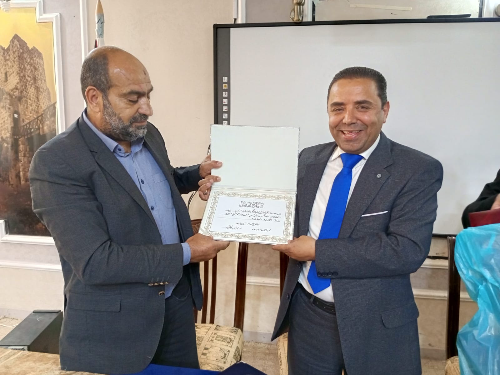 و في نهاية الاحتفال كرم راعي الحفل الدكتور عليوه و الأستاذ سامر بني فواز الأستاذ فراس القضاه بدرع تذكاري و شهادة تقدير و هدايا متعددة كما تمّ تكريم الزميل عوني الصمادي و تمّ تكريم راعي الحفل الدكتور فراس عليوه بدرع تذكاري .