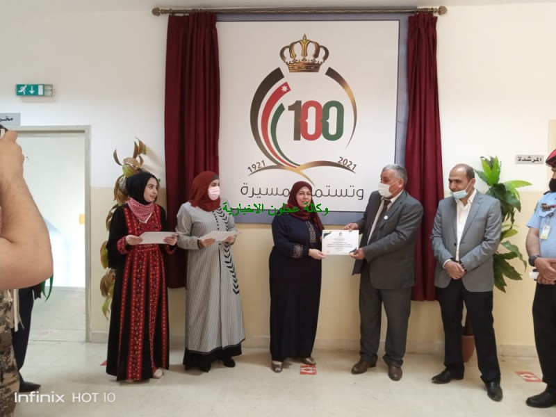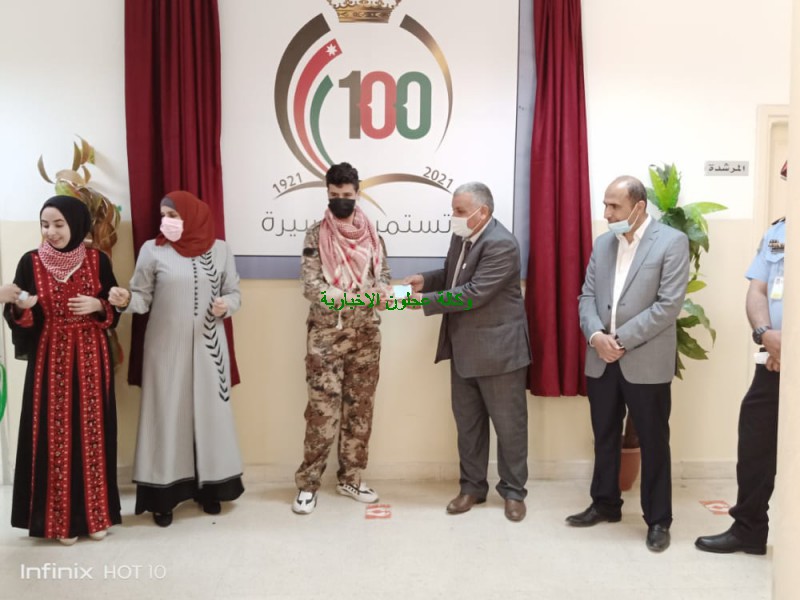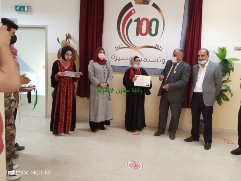 بمناسبة عيد الإستقلال ال 75 للملكة الأردنية الهاشمية رعى مدير التربية والتعليم لمحافظة عجلون سامي الشديفات الإحتفال الذي أقامته مدرسه الملك عبدالله الثاني للتميز /عجلون بهذه المناسبة الوطنية وذلك بحضور مديرة المدرسة بسما المومني وعدد من أعضاء من الهيئتين الادارية والتدريسية والشرطة المجتمعيه ورئيس قسم النشاطات والرقابة والارشاد والمالية في مديرية التربية .