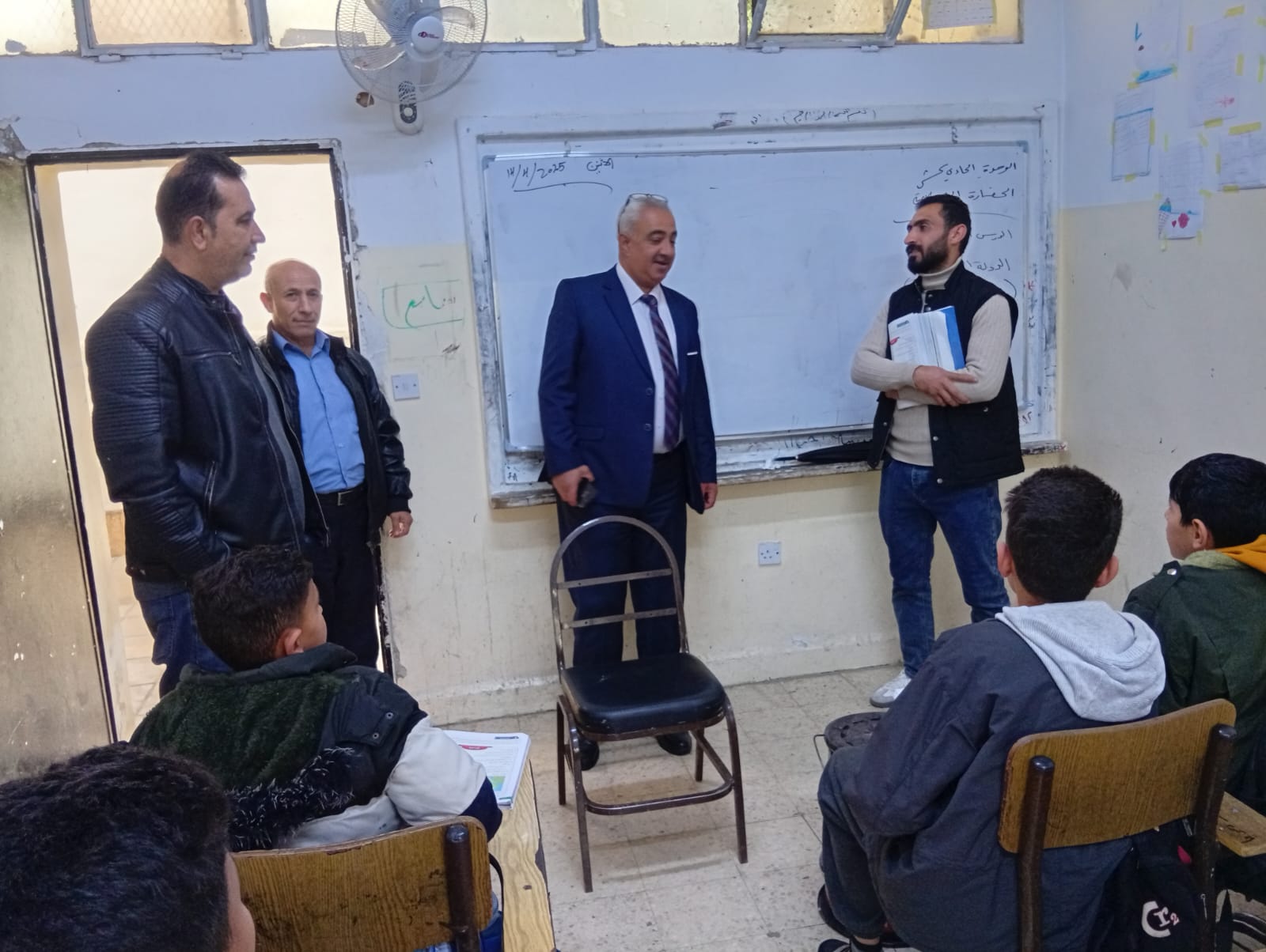 وتجول جويعد في ساحات ومرافق المدرسة والغرف الصفية مطلعا على احتياجات المدرسة والعمل على توفيرها بما يضمن سير العملية التعليمية كما هو مخطط لها.