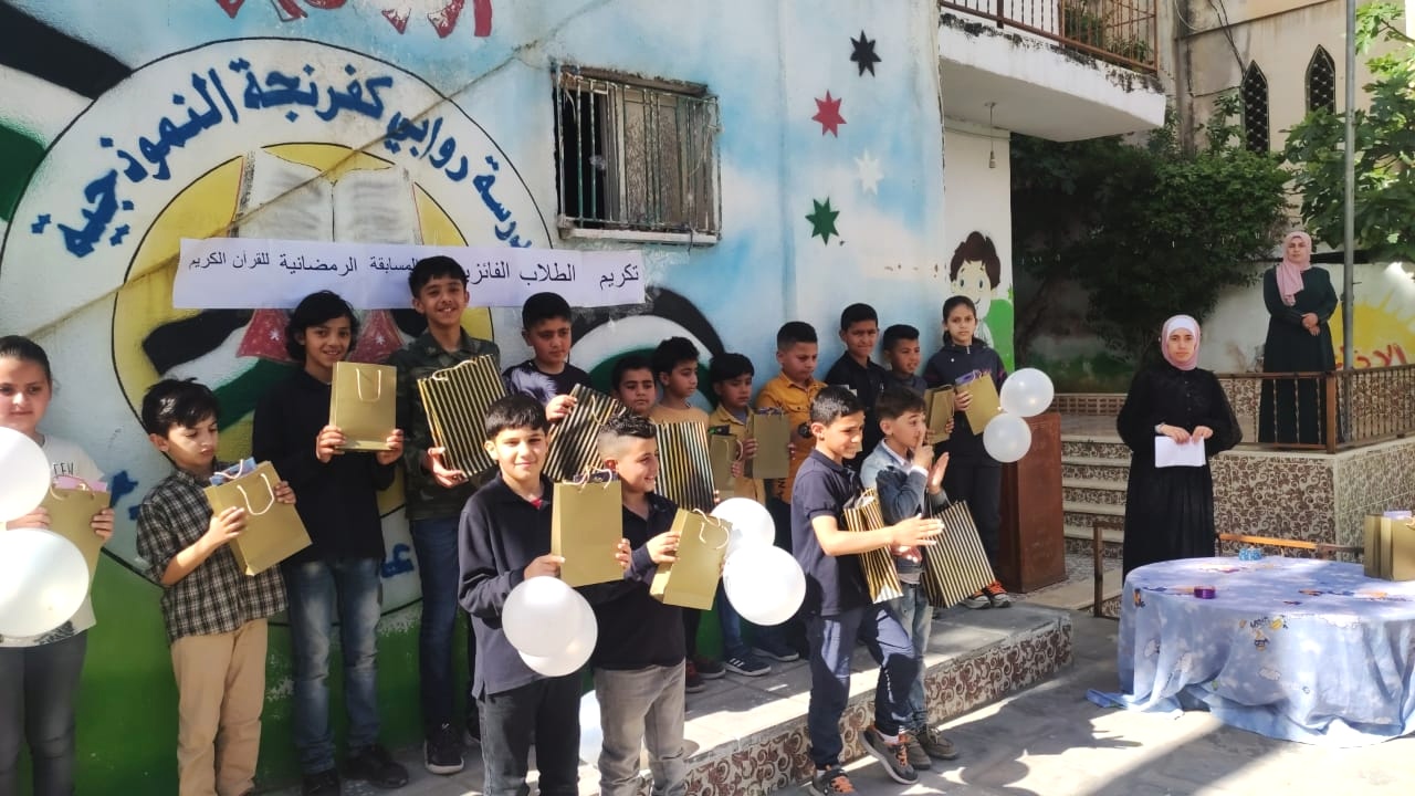 هذا وتم تكريم الفائزين بالمسابقة بهدايا رمزية بحضور المدير العام لمدرسة روابي كفرنجة فاروق بني سلمان، مديرة المدرسة السيدة فريال بني سلمان، والكادر الإداري والتعليمي للمدرسة .