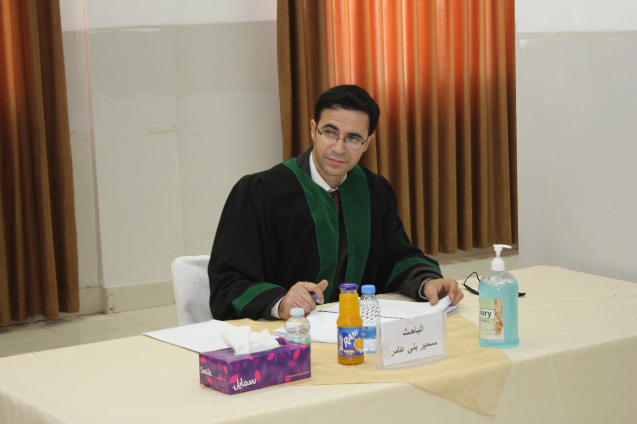 الاولى كانت للطالب: سمير محمود بني عامر وعنوان رسالته ” المسؤولية الجزائية عن جرائم التشهير الإلكتروني دراسة مقارنة ”
