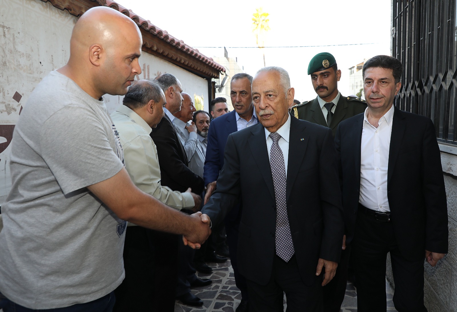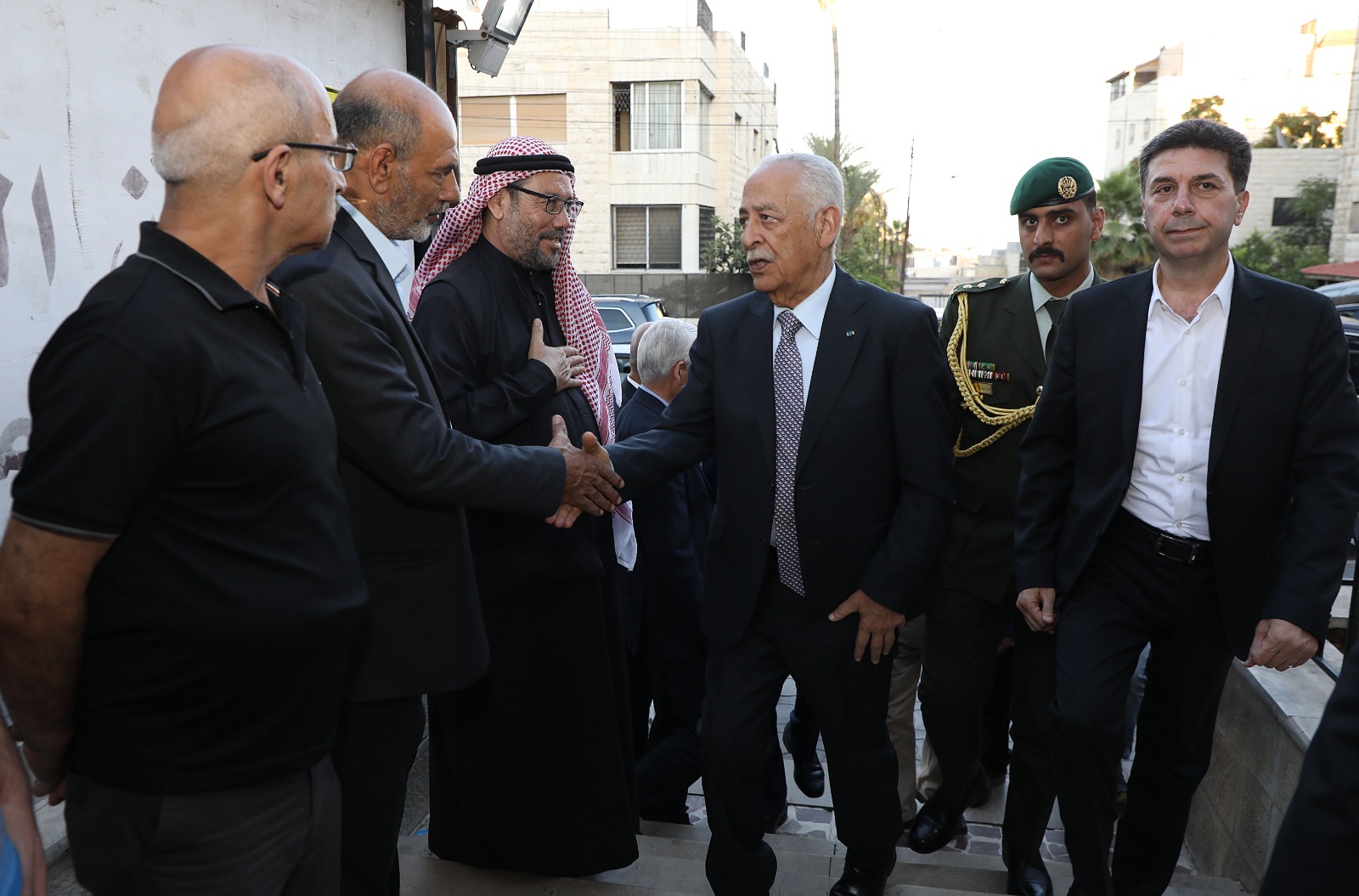 مندوبا عن جلالة الملك عبد الله الثاني بن الحسين المعظم وسمو الامير حسين ولي العهد حفظهم الله ورعاهم معالي رئيس الديوان الملكي الهاشمي السيد يوسف حسن العيسوي يقدم واجب العزاء اليوم الخميس الموافق ٢٠٢٣/٦/٢٩ بوفاة المرحوم اللواء الطبيب بشير رزق الجراح .