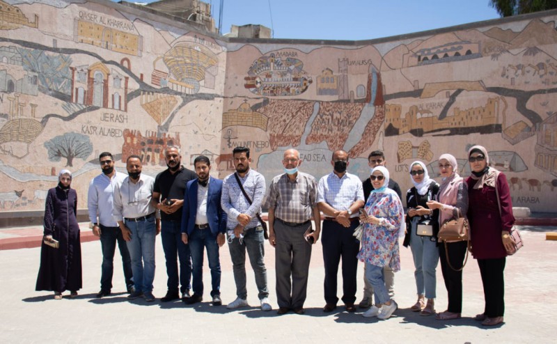وبعد ذلك قام الوفد بزيارة الى زملائهم في نقابة المهندسين فرع مادبا حيث تفضل المهندس أحمد الفلاحات رئيس مجلس فرع مادبا وعدد من مهندسي مادبا ومدير سياحة مادبا بعمل جولة تعريفية للوفد شملت مركز الزوار وعدد من المتاحف والكنائس الأثرية وجبل نيبو