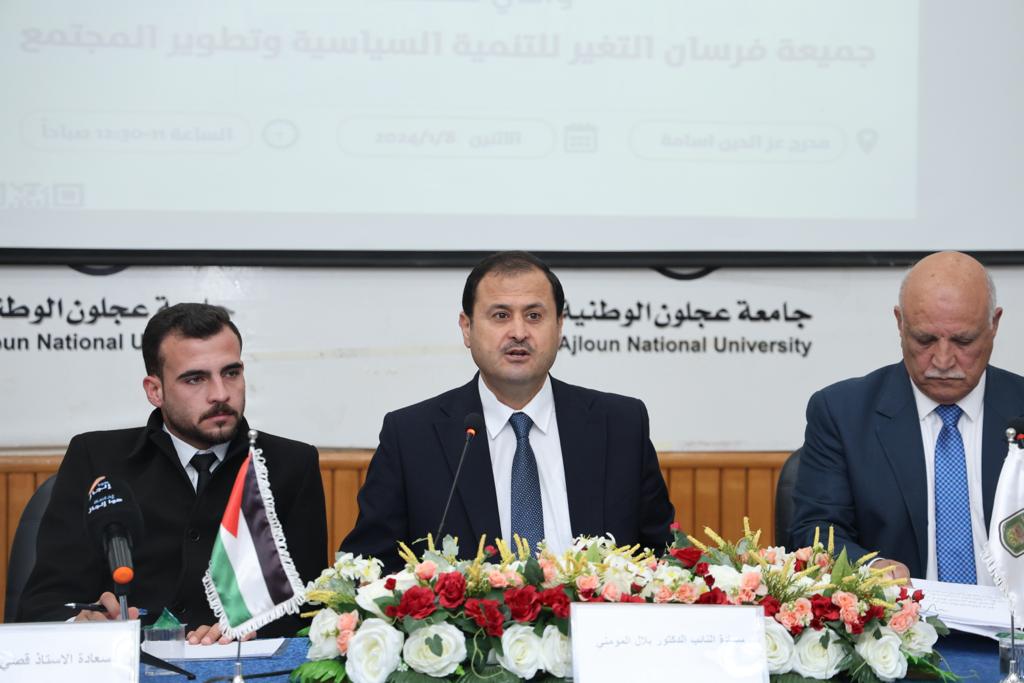 مندوباً عن رئيس جامعة عجلون الوطنية الأستاذ الدكتور فراس الهناندة رعى عميد كلية العلوم التربوية الأستاذ الدكتور برهان الحمادنة اليوم الوطني لنصرة اهلنا في غزة بعنوان ” بوصلتنا فلسطين وتاجها القدس” الذي نظمته جمعية فرسان التغيير للتنمية السياسية وتطوير المجتمع المدني بالتعاون مع الجامعة بمشاركة النائب الدكتور بلال المومني والنائب السابق محمد فريحات والدكتور أحمد الصرايره ومفوض فرسان التغيير قصي الجنايده وحضور عميد شؤون الطلبة الدكتورة ريم الكناني وعمداء الكليات وفاعليات مجتمعية وطلبة الجامعة .