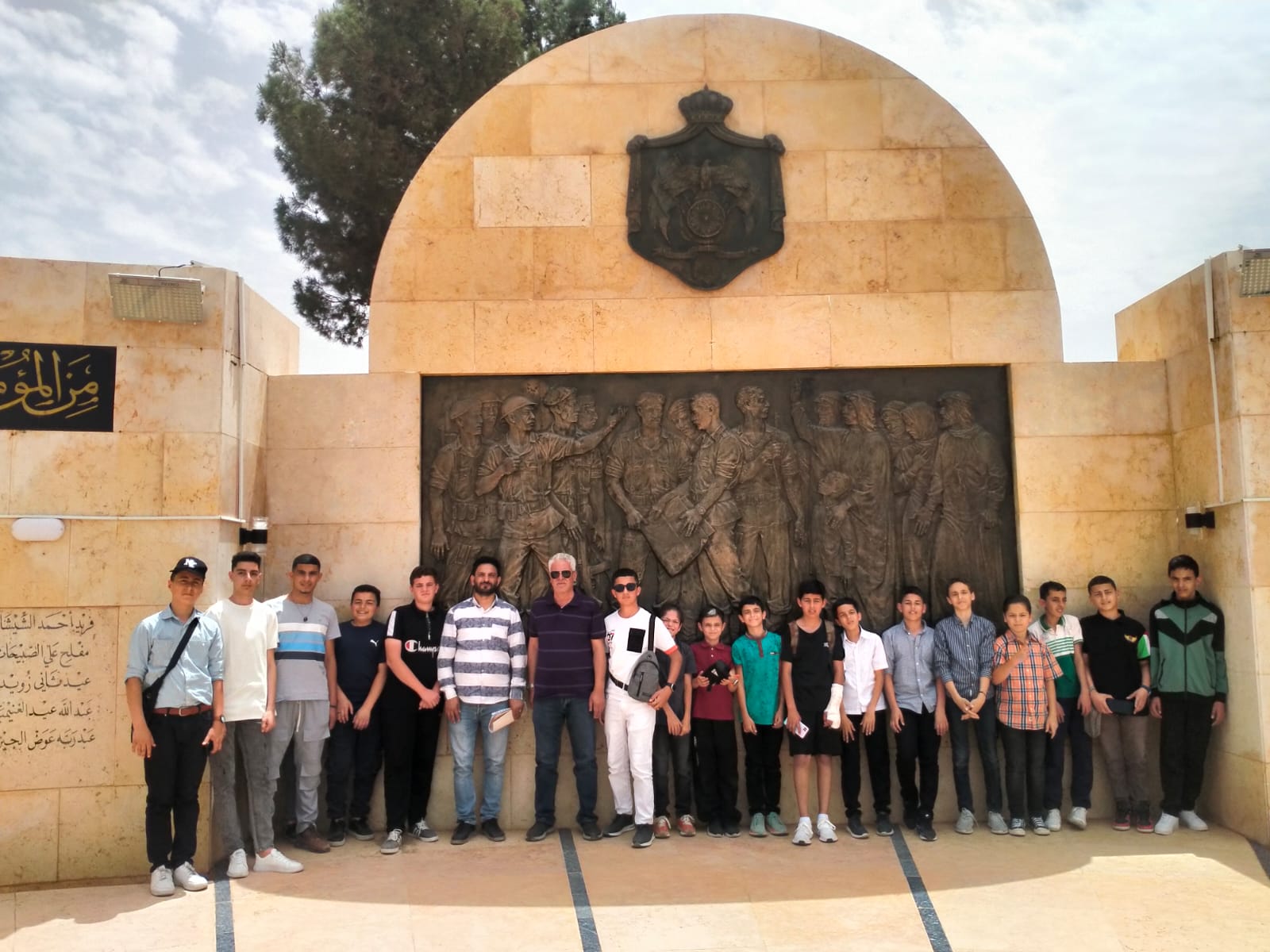 حيث تعرف المشاركون خلال الزيارة على موجودات الصرح مستذكرين جنودنا البواسل وما قدموه فداء لتراب الوطن و دفاعا عن ارضهم ٬ تبعها قراءة سورة الفاتحة على ارواح الشهداء الذي قضوا في المعارك التي خاضها الحيش الاردني .