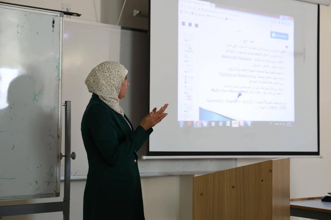 وقدّمت المهندسة نعمة عريقات خلال اليوم الأول من الورشة جلسة تدريبية موسعة، تضمنت مقدمة شاملة عن نظم المعلومات الجغرافية، ومكوناتها الأساسية، إلى جانب استعراض استخداماتها المتعددة في مجالات مثل شبكات المياه، تخطيط الطرق، إدارة الكوارث، والمسح العقاري. كما شرحت الفروقات بين نظم GIS وبرامج التصميم الهندسي مثل AutoCAD، وقدّمت تدريبًا عمليًا أوليًا على إدخال وتحليل البيانات الجغرافية باستخدام أدوات الخرائط الطبقية، وسط تفاعل مميز من الطلبة.
