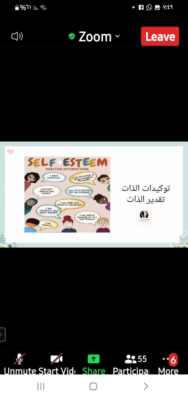 أشارت المدربة بلقيس المومني إلى مفهوم الاتزان الانفعالي للفرد والسمات الانفعالية والإشارة إلى الأساس أو المحور الذي تنتظم حوله جميع جوانب النـشاط النفـسي التي تسمى بالانفعالات أو التقلبات الوجدانية من حيث تحقيقها لشعور الـشخص بالاستقرار النفسي أو باختلال هذا الاستقرار