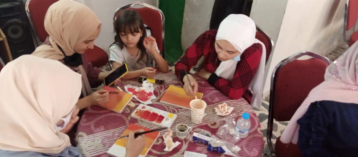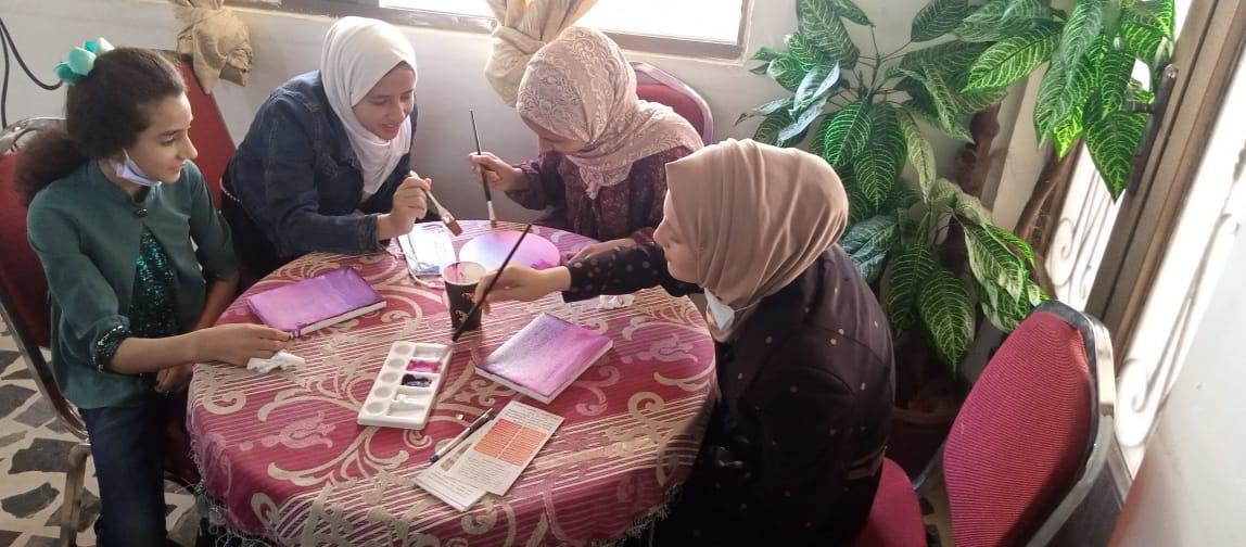 ورشة عمل فنية بعنوان “الرسم بإستخدام الألوان الزيتية” في مركز شابات صخرة