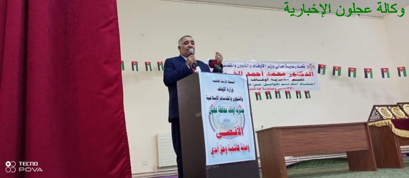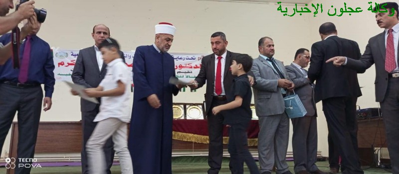 رعى وزير الأوقاف والشؤون والمقدسات الإسلامية الدكتور محمد الخلايله حفل تكريم اوائل المراكز الصيفية لتحفيظ القرآن الكريم لهذا العام 2022 في محافظة عجلون والتي جاءت تحت عنوان ( الأقصى وصاية هاشمية وحق أبدي ) الذي أقيم في القاعة الهاشمية بحضور محافظ عجلون قبلان الشريف والنائب خلدون شويات ومدير الأوقاف الدكتور احمد الصمادي ورئيس جامعة عجلون الوطنية المكلف الدكتور علي الزعبي ورئيس مجلس المحافظة عمر المومني ورئيس بلدية عجلون الكبرى حمزه الزغول واعضاء مجلس المحافظة واعضاء بلدية عجلون الكبرى وموظفي الأوقاف ومشرفي ومشرفات المراكز الصيفية.