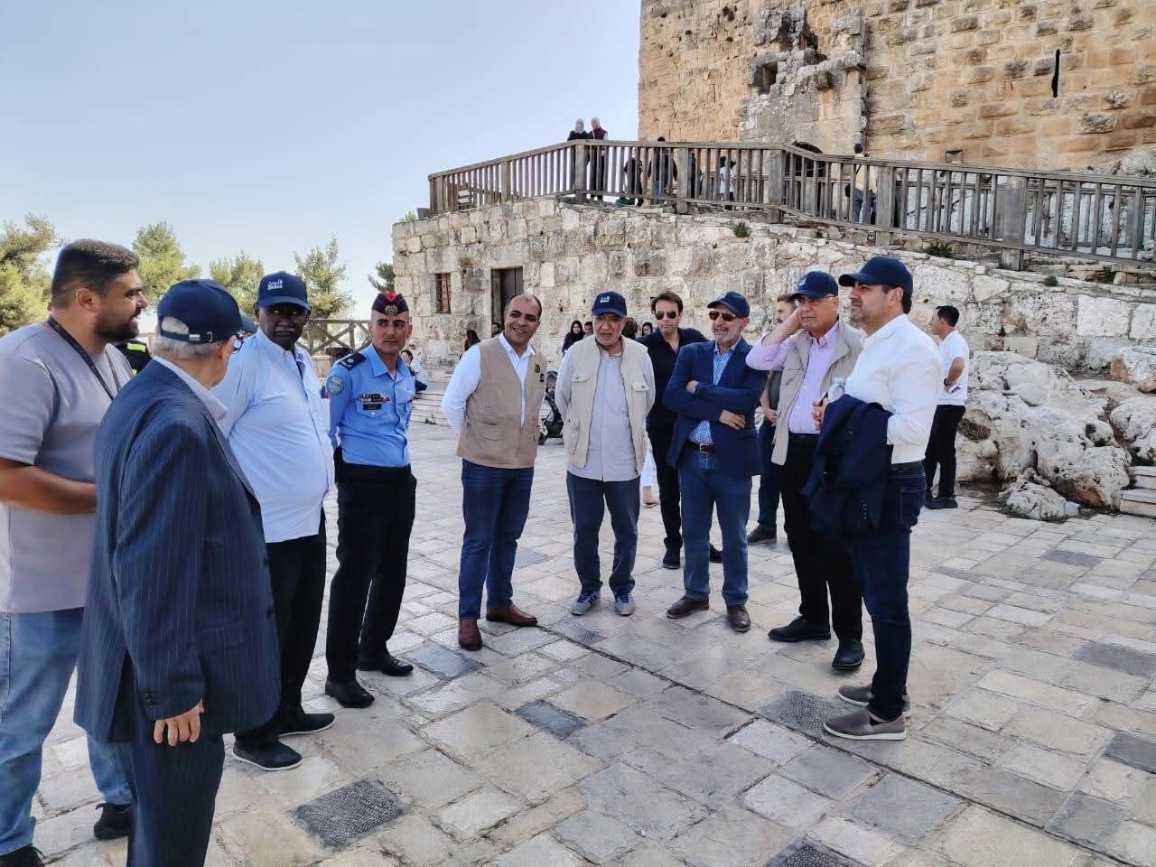 قلعة عجلون حيث استمعوا لشرح عن القلعة وتاريخها واهميتها حيث تم إستقبالهم ومرافقتهم مدير سياحة محافظة عجلون فراس الخطاطبة حيث تم تقديم كافة التسهيلات .
