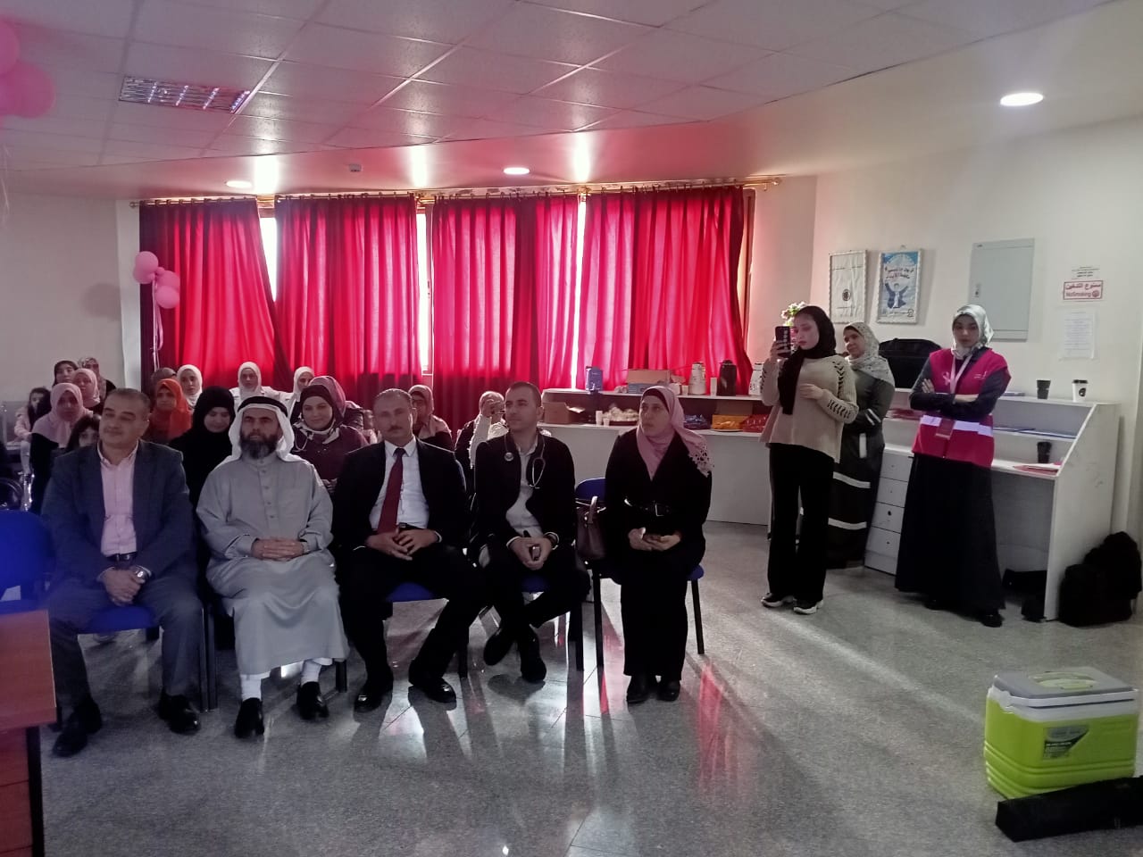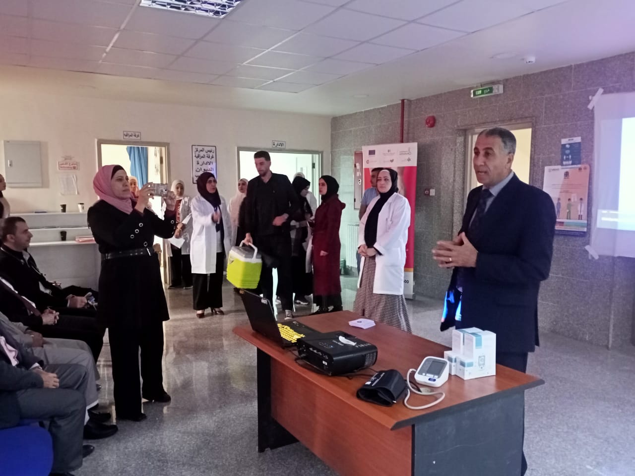 برعاية عميد كلية عجلون الجامعية /جامعة البلقاء التطبيقية الأستاذ الدكتور وائل الربضي نظم قسم العلوم التطبيقية /تخصص التمريض في كلية عجلون الجامعية يوم تمريضي مفتوح في مركز عنجره الصحي بحضورمدير مركز عنجره الصحي الشامل الدكتور طلال عريقات ورئيس قسم العلوم التطبيقية الدكتورأسعد فريحات والدكتور خالد ربابعه رئيس قسم التخطيط والتطويرورئيس قسم العلاقات العامة نجاح عنانزة، بتنسيق من طلبة التمريض في مادة تمريض صحة المجتمع وبإشراف من رئيس القسم الدكتور اسعد فريحات والمدربتان وجدان بني مرتضى ورنا بني نصر في مركز عنجره الشامل ويتضمن اليوم فحوصات مخبرية مجانية ومراقبة ضغط الدم ومحاضرات تثقيفيه عن الأمراض المزمنة وسرطان الثدي وهشاشة العظام وفحص للنظر .