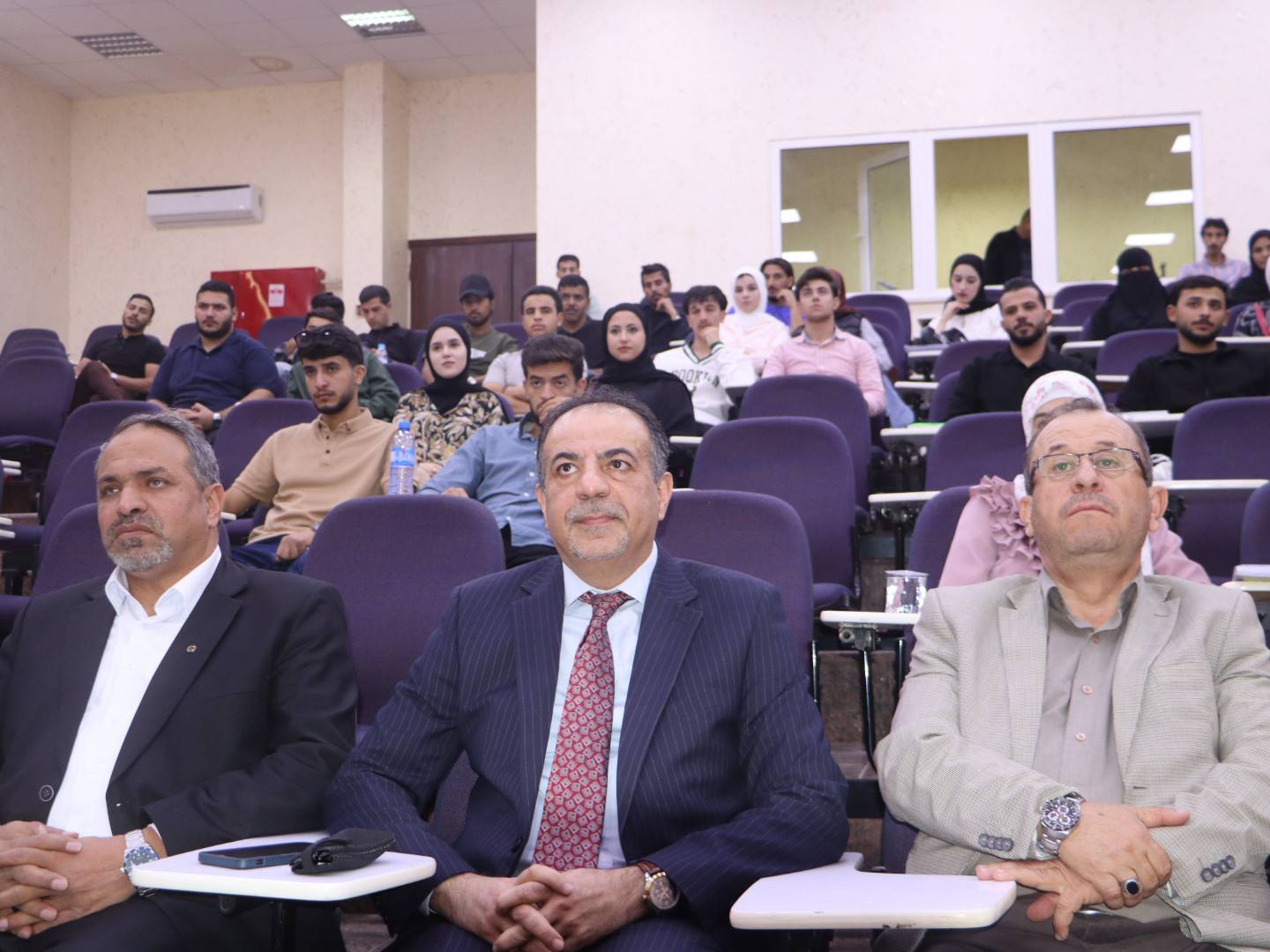 وحضر الندوة عميد الكلية الدكتور وليد العويمر ونائبه الدكتور صبحي العزام ومساعد العميد الدكتورة نجاح الهبارنة وعميد كلية تكنولوجيا المعلومات الدكتور أحمد الحسنات ورئيس قسم العلوم السياسية الدكتور معتصم خلايلة وعدد من الطلبة وأعضاء الهيئة التدريسية والإدارية .