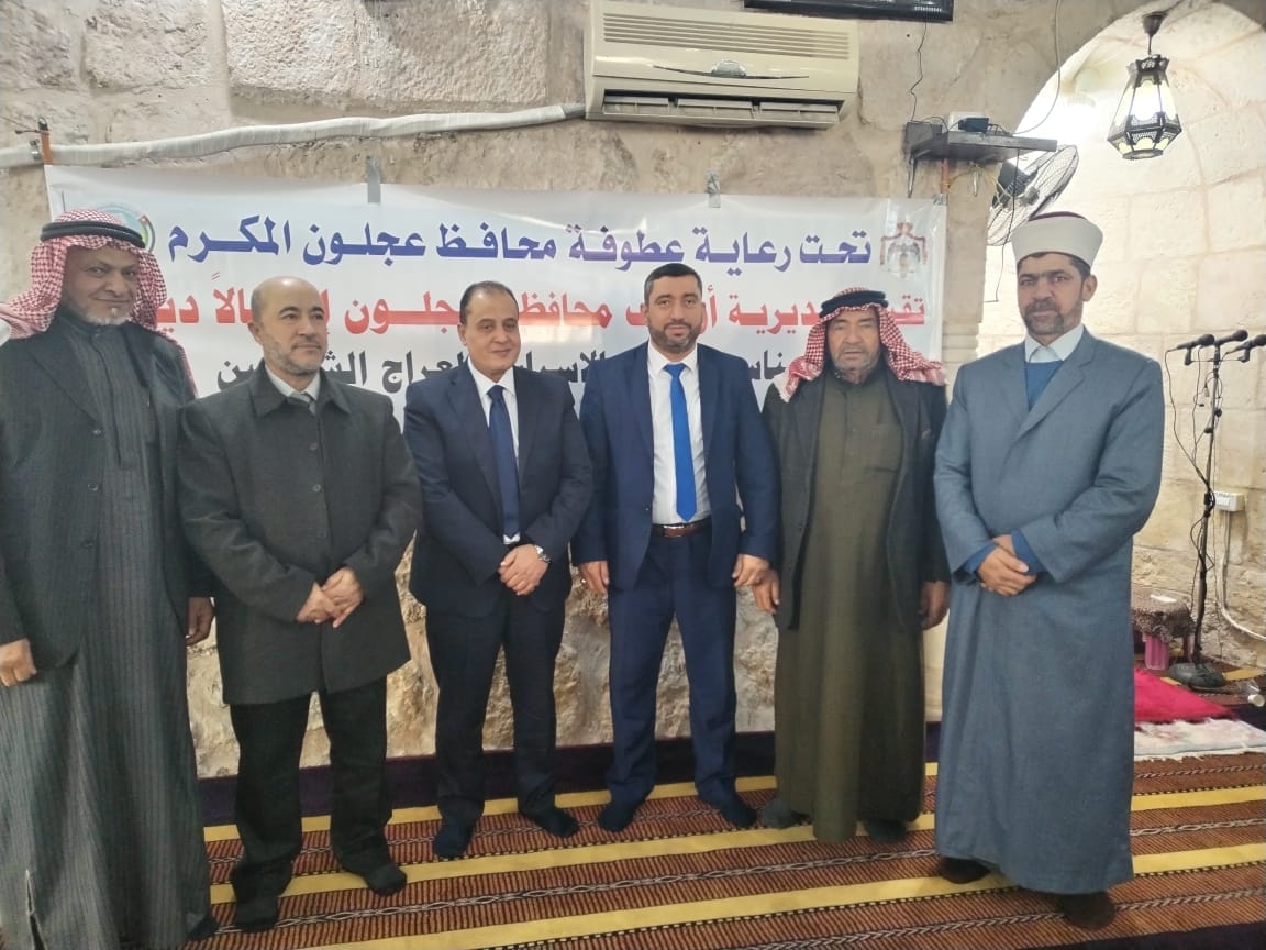 مندوبا عن محافظ محافظة عجلون الدكتور قبلان الشريف رعى مساعد المحافظ لشؤون التنمية الدكتور هاشم العبدلات الإحتفال الذي أقامته مديرية أوقاف محافظة عجلون في مسجد عجلون الكبير بمناسبة ذكرى الإسراء والمعراج وذلك بحضور الدكتور أحمد الصمادي مدير مديرية أوقاف محافظة عجلون و مفتي محافظة عجلون الدكتور محمد بني طه والاستاذ الدكتور عبدالله الوردات رئيس قسم الفقه في جامعة جرش الاهلية والسادة الأئمة والمؤذنين .