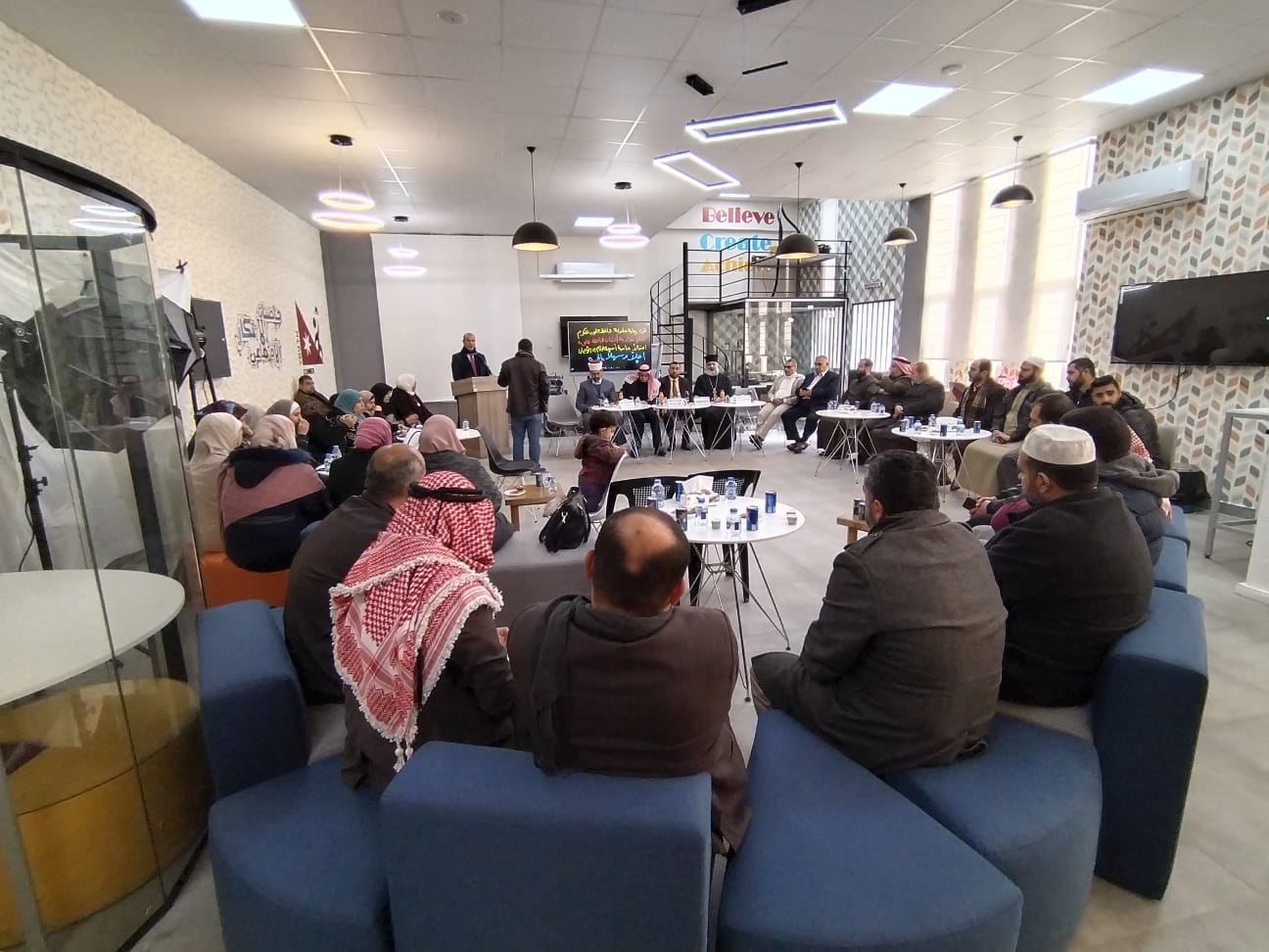 و بدأ الحفل بالسلام الملكي ثم آيات عطرة من الذكر الحكيم تلاها الشيخ غسان القضاة ومن ثم ألقى مدير الأوقاف كلمة أكد فيها أن الدعوة إلى الوئام هي من أساس الشريعة الإسلامية ومبادئها العامة التي دلت عليها ووضع دعائمها الرئيسية الرسول عليه السلام وطبقها الخلفاء والأئمة على مر التاريخ لافتا الى أن الالتزام بالشريعة الإسلامية يدعو المسلم إلى الوئام والعيش المشترك والتسامح والتمسك به، مبينا أن الوئام يعطي الحق للبشر المختلفين بألوانهم وأجناسهم ومعتقداتهم بأن يعيشوا بسلام وأمن وأمان.