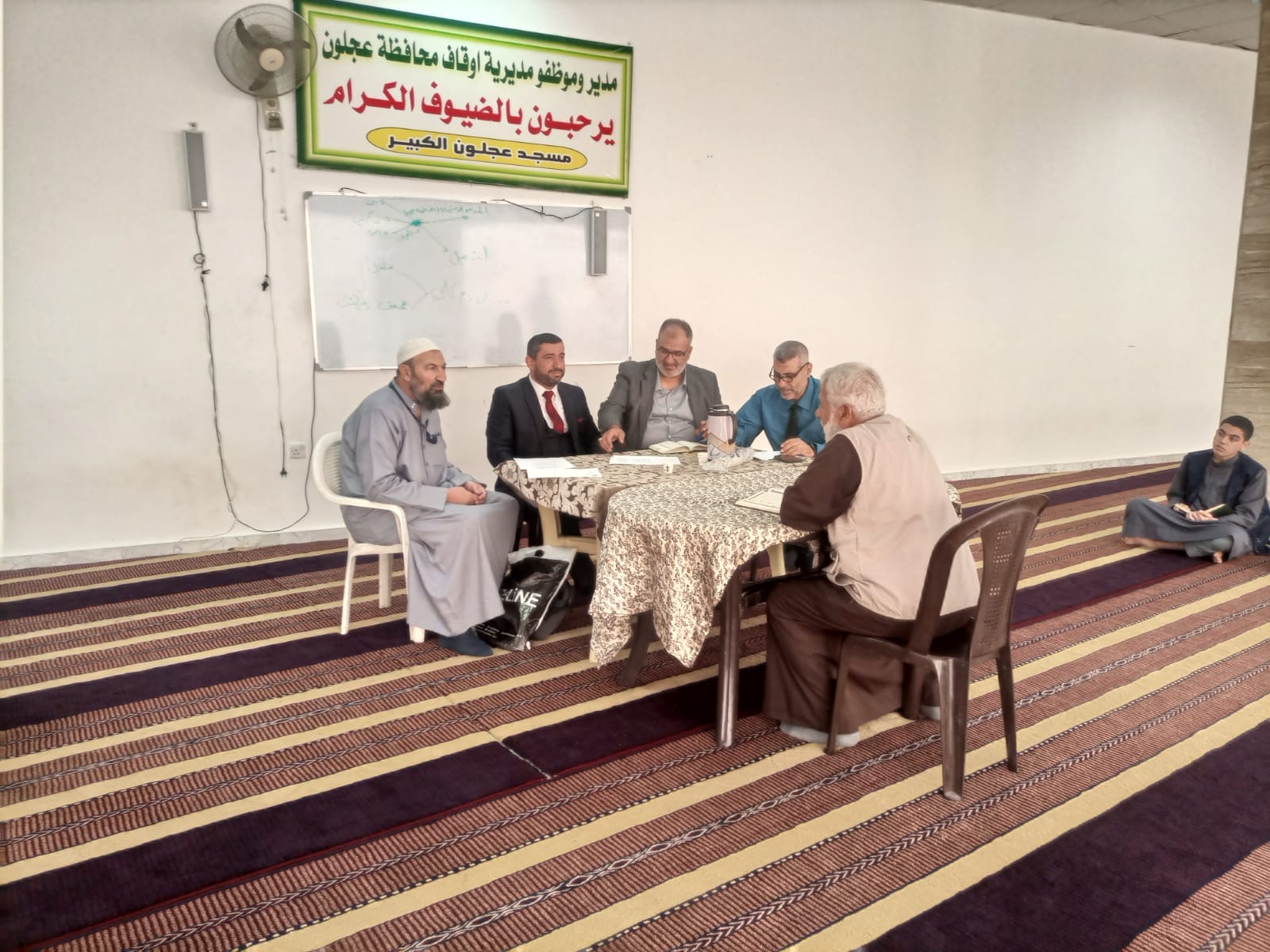 بمتابعة وإشراف من فضيلة مدير مديرية أوقاف محافظة عجلون الدكتور أحمد محمود الصمادي عقد في قاعة مسجد عجلون الكبير اليوم الثلاثاء  امتحان مستويات التلاوة والتجويد الثلاثة في مسجد عجلون الكبير حيث قامت لجنة امتحان المستويات والمؤلفة من الدكتور غالب الزعارير ، والدكتور عبدالسلام البزايعة، والشيخ توفيق ضمرة وبحضور رئيس قسم دور القرآن الكريم الشيخ عبدالله هزايمة