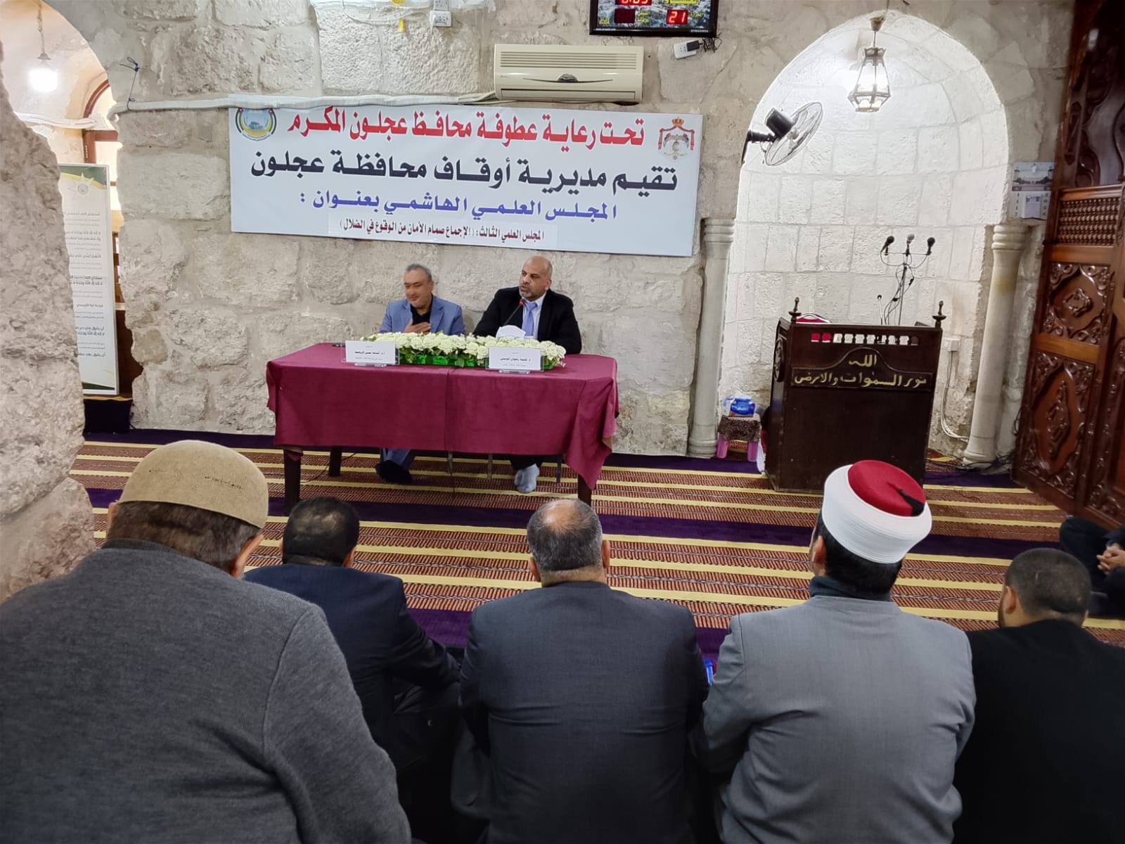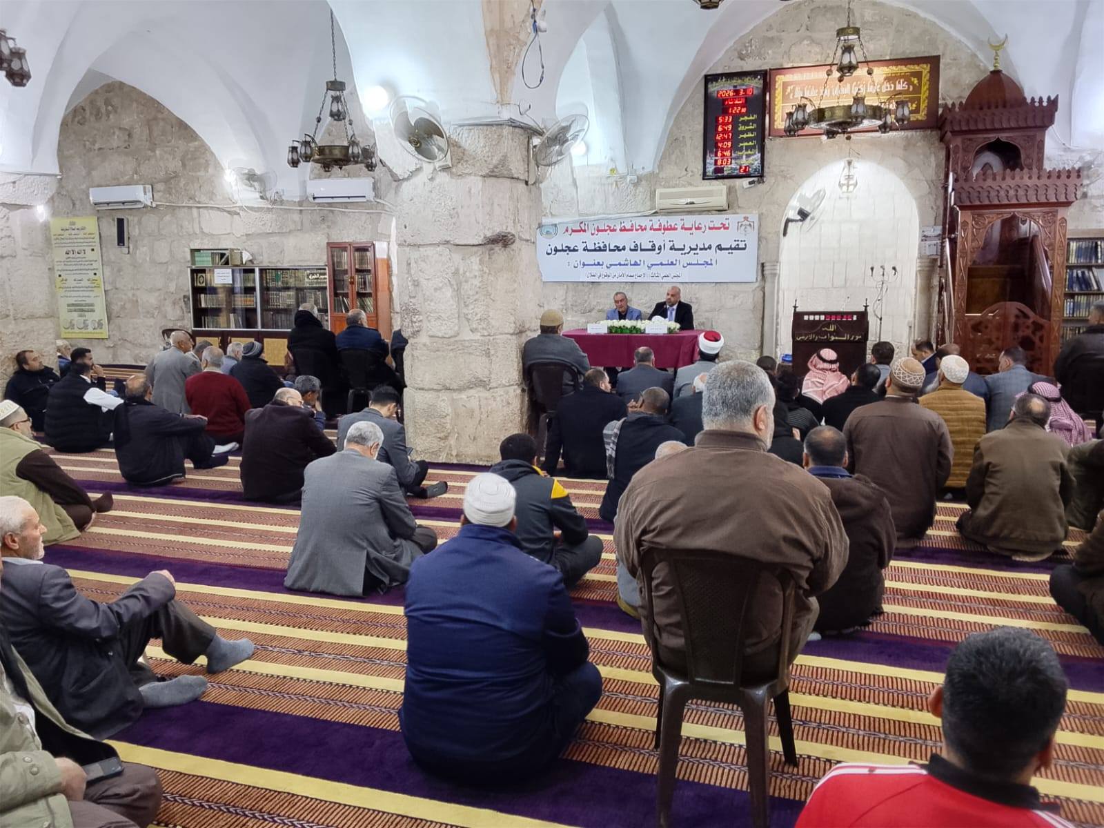 أقامت مديرية أوقاف محافظة عجلون اليوم الثلاثاء 10 / 03 / 2026 م في مسجد عجلون الكبير المجلس العلمي الهاشمي الثالث تحت عنوان ( الإجماع صمام الأمان من الوقوع في الضلال) وبحضور عدد من أصحاب الفضيلة الائمة والمؤذنين وعدد كبير من المواطنين .