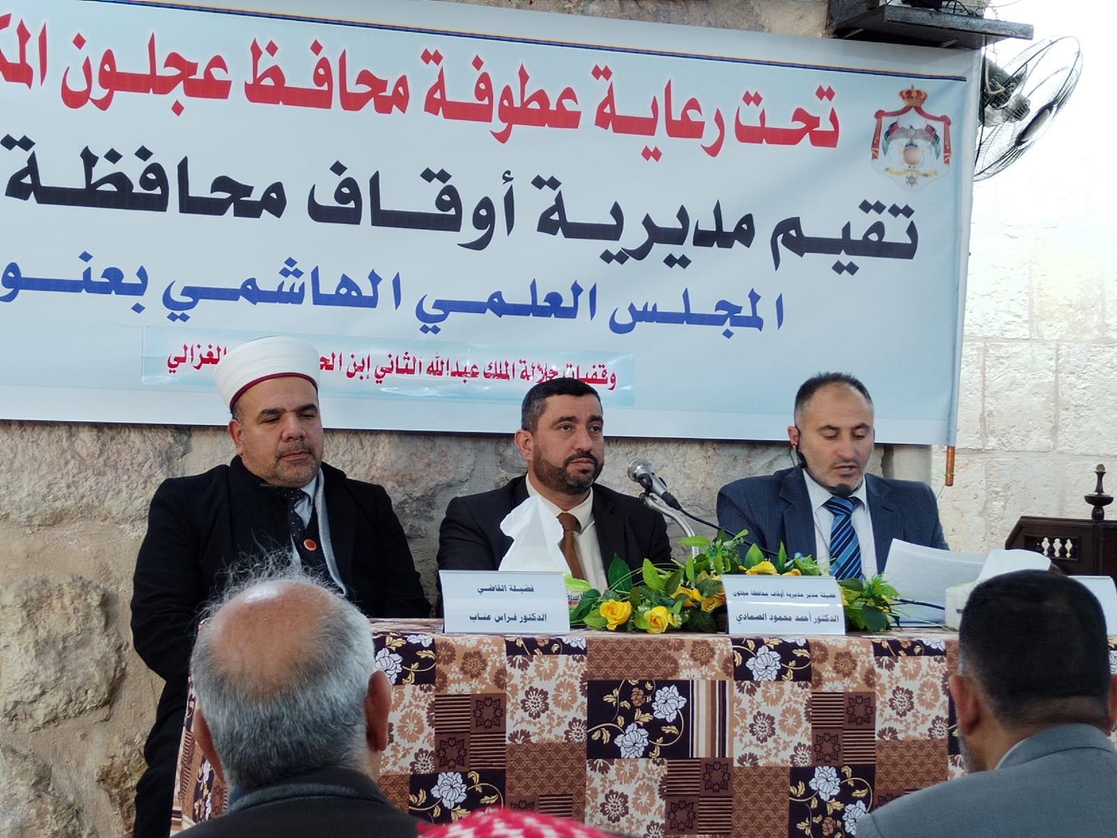 اقامت مديرية اوقاف محافظة عجلون اليوم الثلاثاء في مسجد عجلون الكبير المجلس العلمي الهاشمي الأول بعنوان ” وقفيات جلالة الملك عبدالله الثاني بن الحسين – حجة الاسلام الإمام الغزالي ”