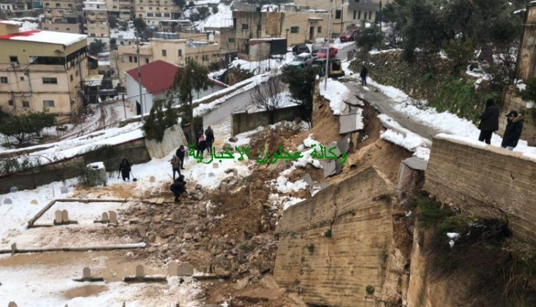إنهيار أجزاء واسعة من سور المقبرة الإسلامية في عنجرة