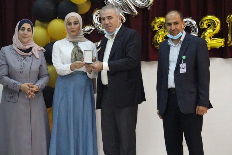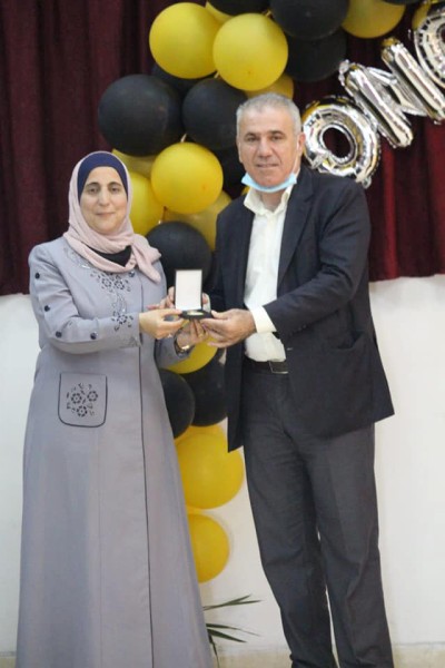 وفي نهاية الاحتفال وزع المهندس ابو احمده والمديرة الصمادي الهدايا التقديرية على الطالبات ، كما كرمت الصمادي المهندس ابو احمده .