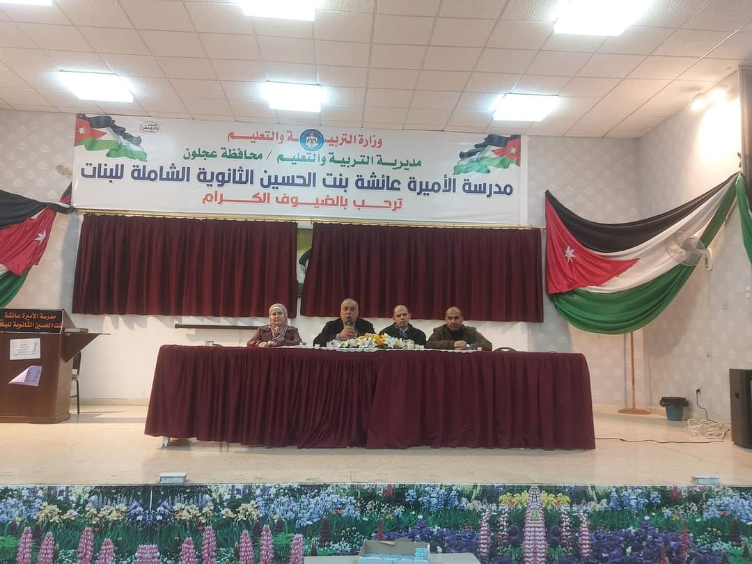 اجتمع مدير التربية والتعليم لمحافظة عجلون الأستاذ أسعد الشرع بمدراء ومديرات المدارس في قاعة مدرسة الأميرة عائشة بنت الحسين الثانوية للبنات بحضور مدير الشؤون التعليمية الدكتور أويس الصمادي و مديرة الشؤون الإدارية و المالية الأستاذة صبحة المومني ورئيس قسم الرقابة الداخلية الدكتور أمجد القضاة.