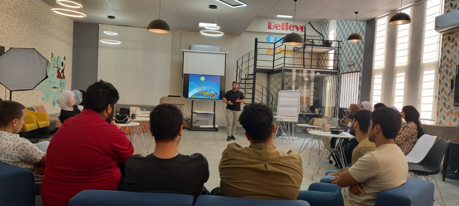 وأشار المدرب رعد الصمادي إلى تعريف تكنولوجيا التصنيع الرقمي، والطباعة ثلاثية الأبعاد ومراحل تصميم المنتجات وتصنيعها محلياً وبناء قدرات الشباب في التفكير الناقد، وطرق حل المشكلات والمهارات التقنية اللازمة لتصميم وتصنيع المنتجات التي تقدم حلولا ريادية ومبتكر لمشكلات موجودة في مجتمعاتهم.