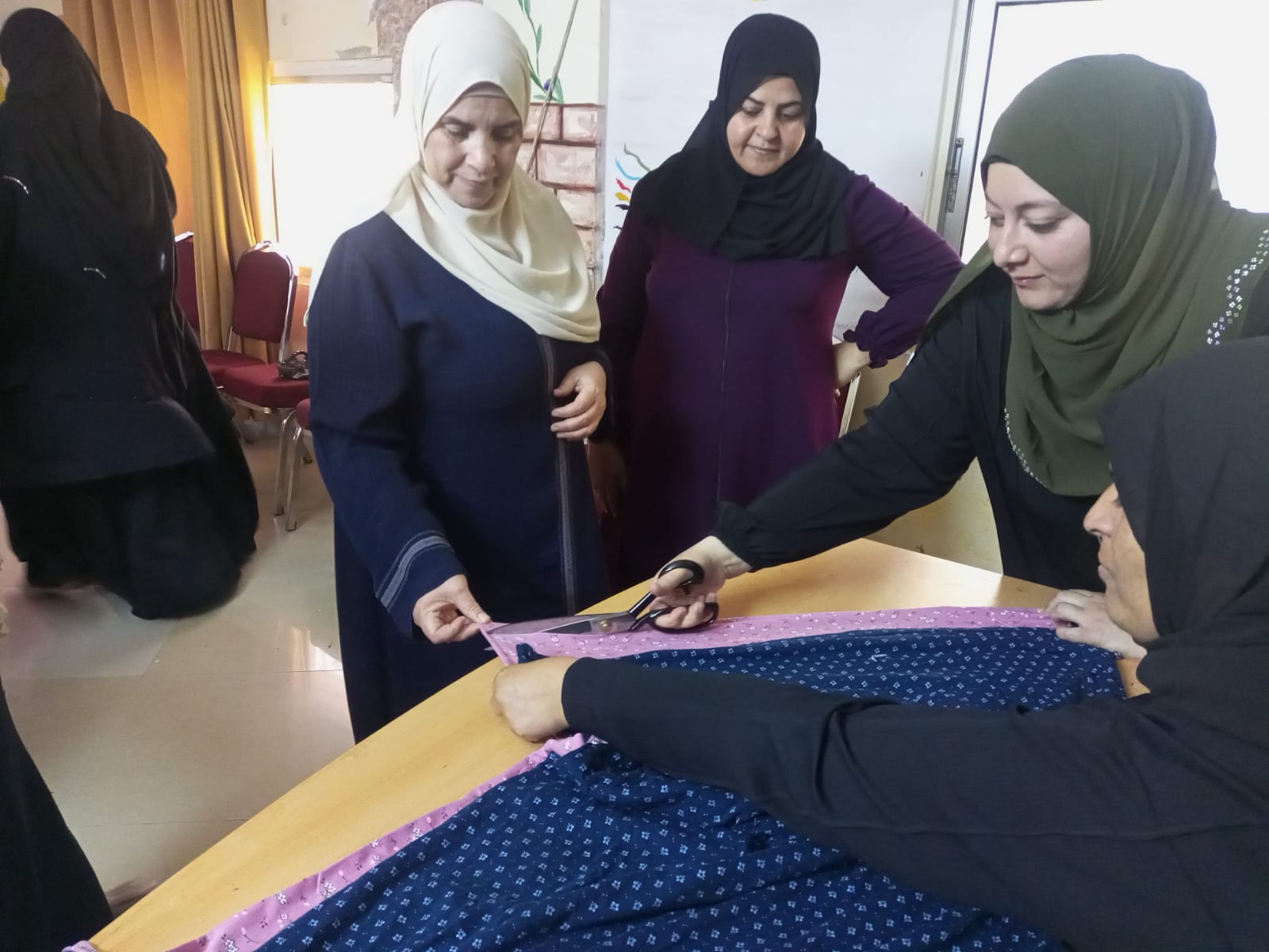 قدمت المدربة فاطمة سويدان شرحا عمليا ونظريا حول الأدوات المستخدمة في خياطة الملابس، وآليات أخذ القياسات، إلى جانب تدريب المشاركات على مهارات أساسية في الخياطة تهدف إلى رفع كفاءتهن وتمكينهن من دخول سوق العمل.
