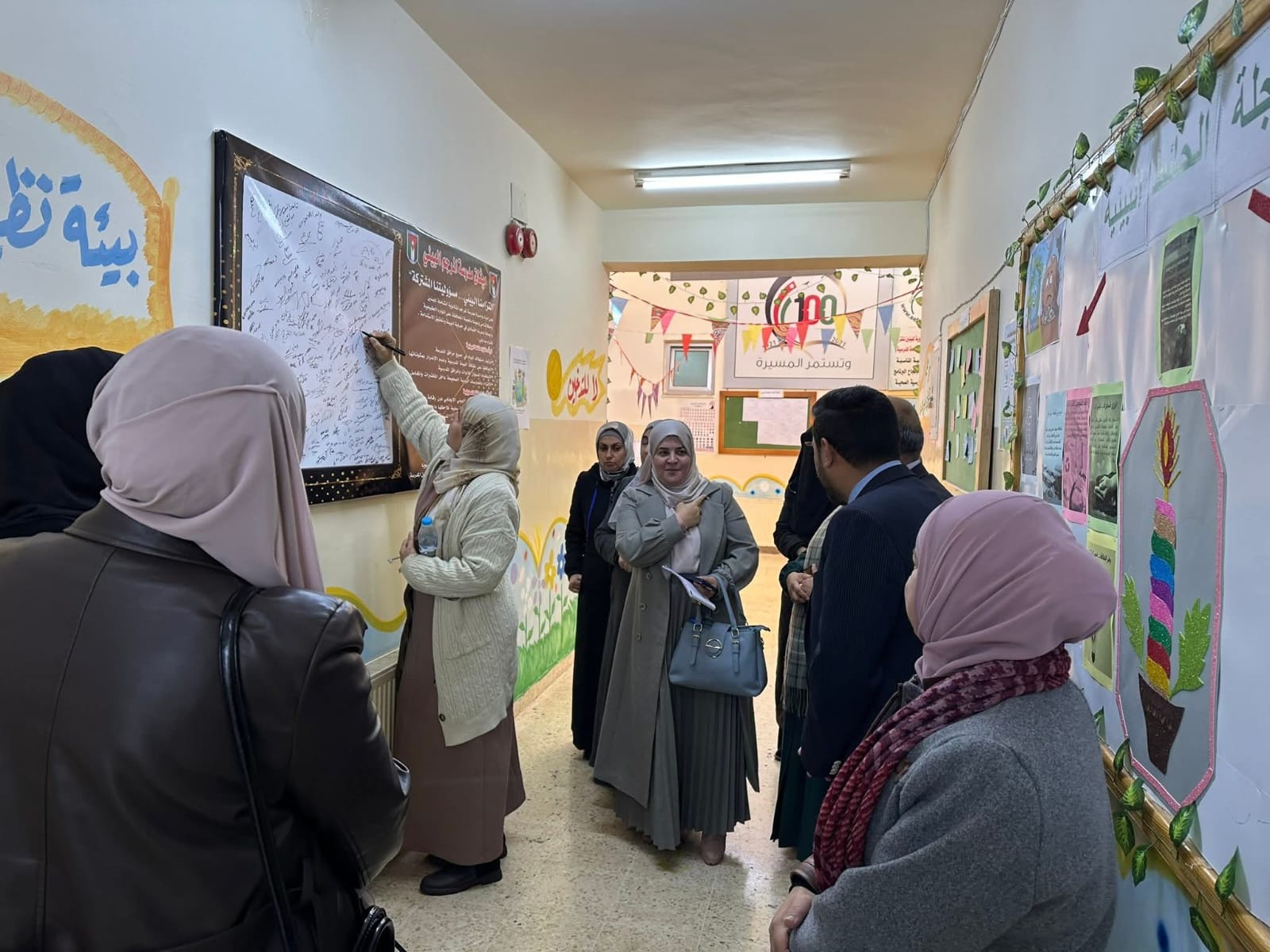 لوحة “ماذا فعلت اليوم من أجل البيئة” و شجرة الوعد البيئي و مجلة الهيئة البيئية وميثاق مدرسة المرجم الثانوية البيئي، حيث شارك الجميع بالتوقيع عليه