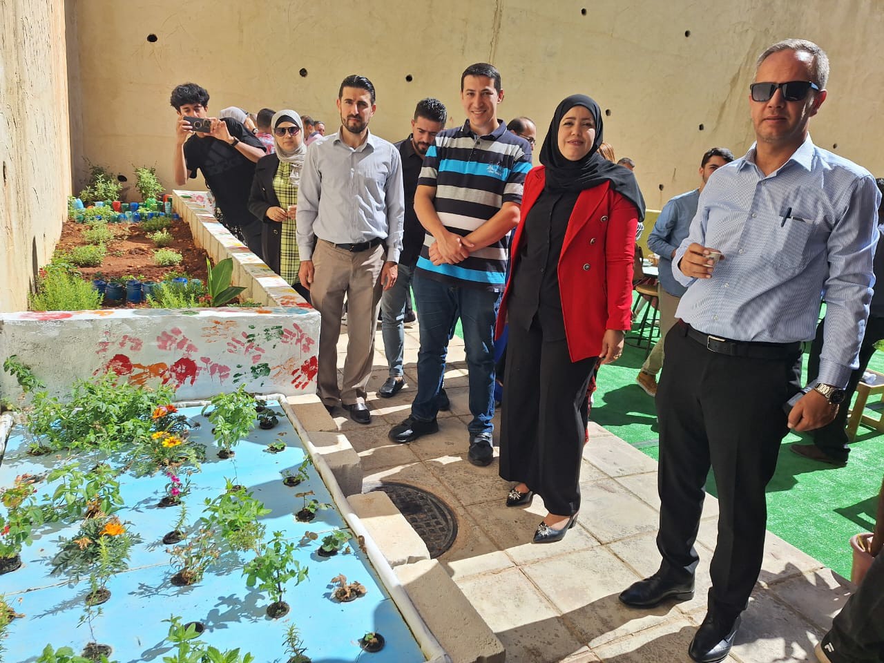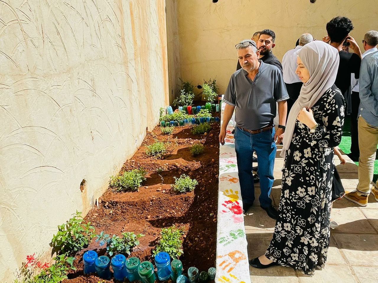 مشيرة الى ان الفريق من المعلمين والمعلمات والطلبة قاموا بإعادة الحياة لمنطقة كانت معطلة وغير مستخدمة بإعادة تأهيلها بصورة مختلفة وزراعتها بنباتات الزينة والزراعة المائية بعد عمل أحواض مثمنة للدكتور ماهر قدورة، مدير مؤسسة الجود للرعاية بإطلاق المبادرة .