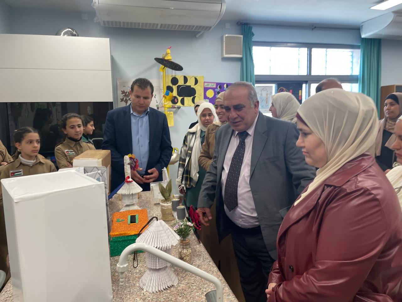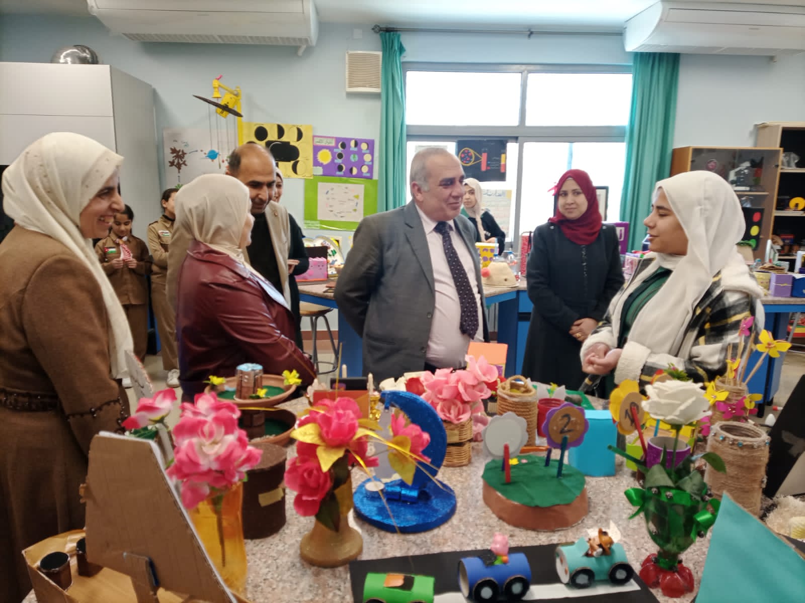حيث ثمن الشرع الجهود المبذولة في تصميم هذا المعرض والذي هدفه الرئيسي تقليل حجم النفايات وبالتالي تقليل التلوث البيئي وتشجيع الطلبة على الإبداع والابتكار.