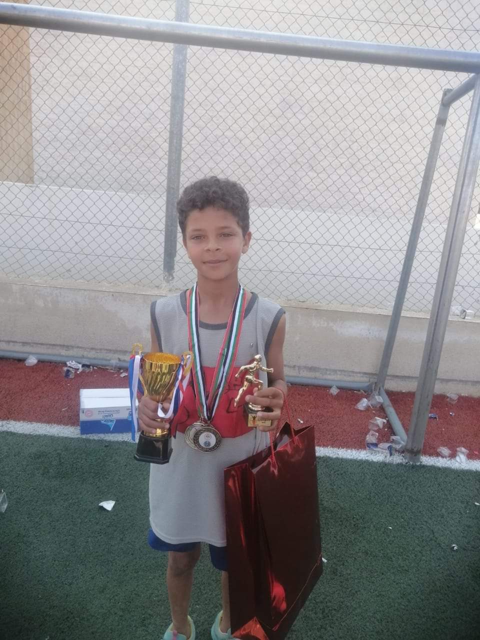 بطل سباق الضاحية للمرحلة الدنيا الطالب محمد بشارات من مدرسة اليرموك س للبنين في سباق ٦ كم