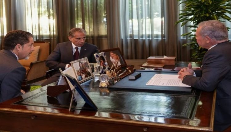 نشر الديوان الملكي الهاشمي، الثلاثاء، صورة من اجتماع لجلالة الملك عبدالله الثاني، برئيس الوزراء جعفر حسان، بحضور مدير مكتب جلالته، علاء البطاينة.