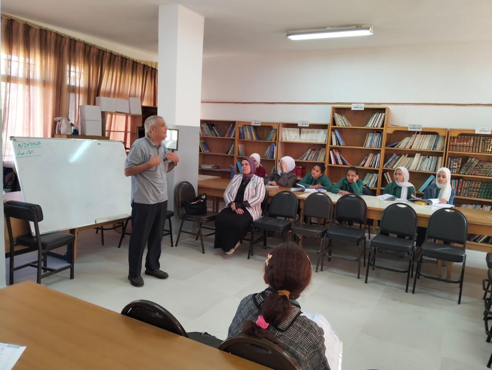 استضافت مدرسة عجلون الاساسية المختلطة مندوب الدستور في عجلون الزميل علي القضاة رئيس مجلس التطوير التربوي في محاضرة حول العمل الصحفي استمعت لها طالبات الصف الثامن الاساسي .