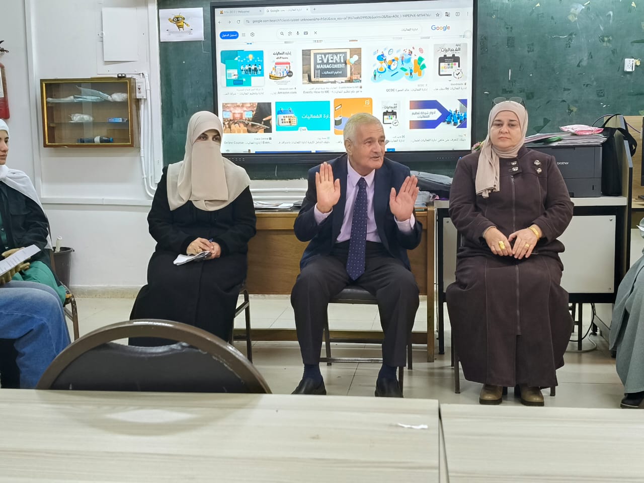 فقد ادار الزميل القضاة حوارًا تفاعليًا مع الطالبات، وطرح أمثلة تطبيقية موسعة عززت فهمهن لمفهوم إدارة الفعاليات وربطه بالمشاريع التي تعمل عليها طالبات إدارة الأعمال حيث نُفذت المحاضرة بالتعاون مع معلمة التخصص ديالا شويات، التي تميزت بربط التعلم بالحياة الواقعية، واستثمار اصحاب الخبرات لاثراء خبرات الطالبات وتحسين مخرجات تعلمهن.