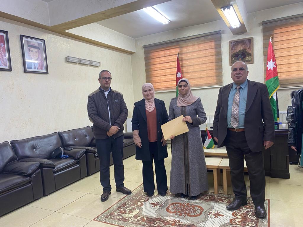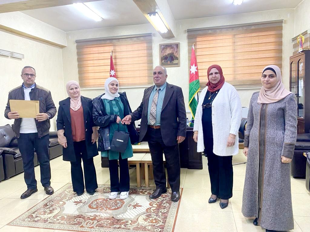 وقد تم التكريم بحضور مديرة الشؤون الإدارية والمالية صبحة المومني ومنسق المسابقة رئيس قسم النشاطات الأستاذ سامر القضاة.