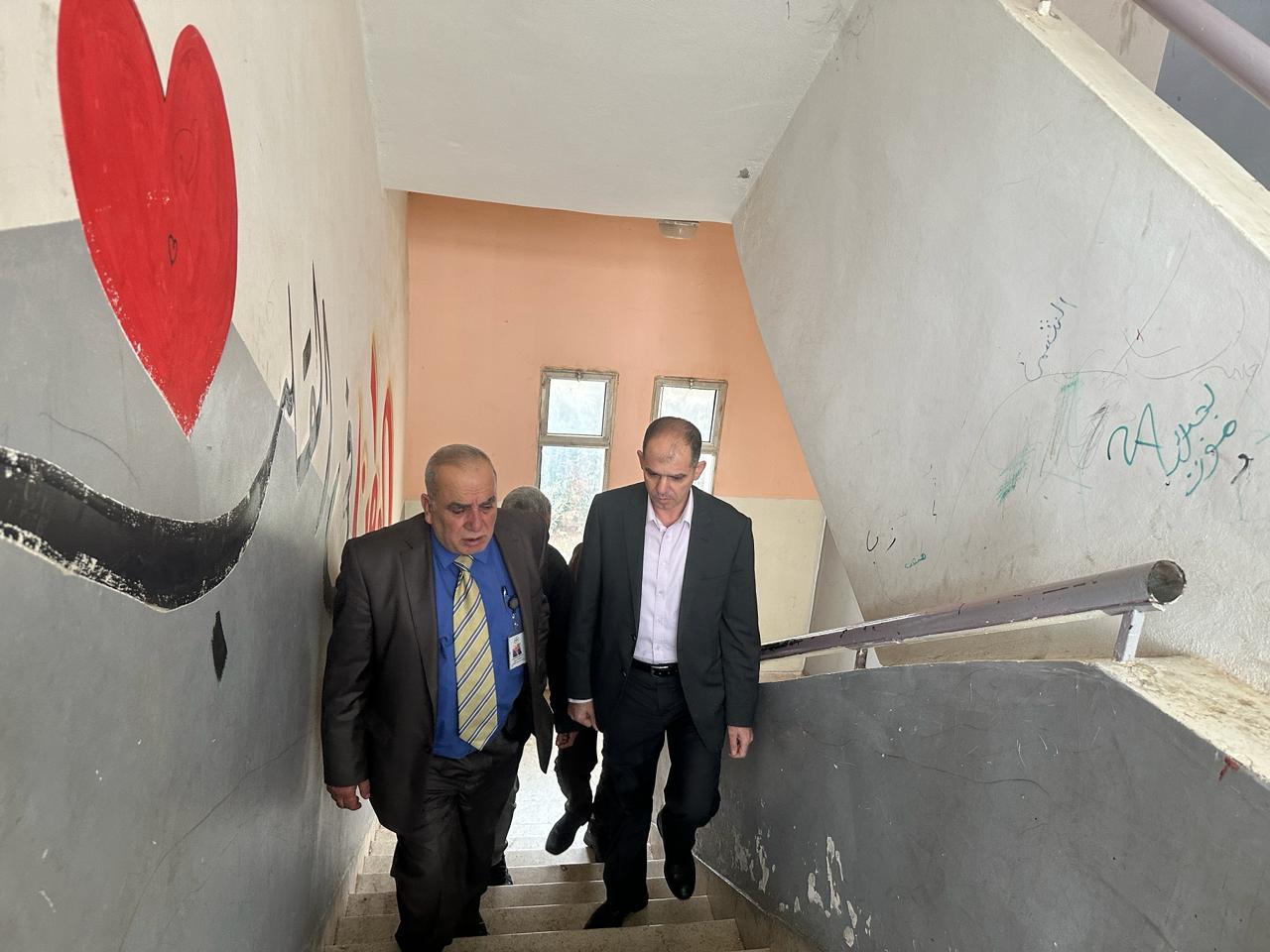 حيث اطلع الشرع على واقع البيئة التعليمية للمدرستين وأهم الاحتياجات اللازمة لضمان استمرارية العملية التعليمية و بما يضمن توفير بيئة مدرسية آمنة.