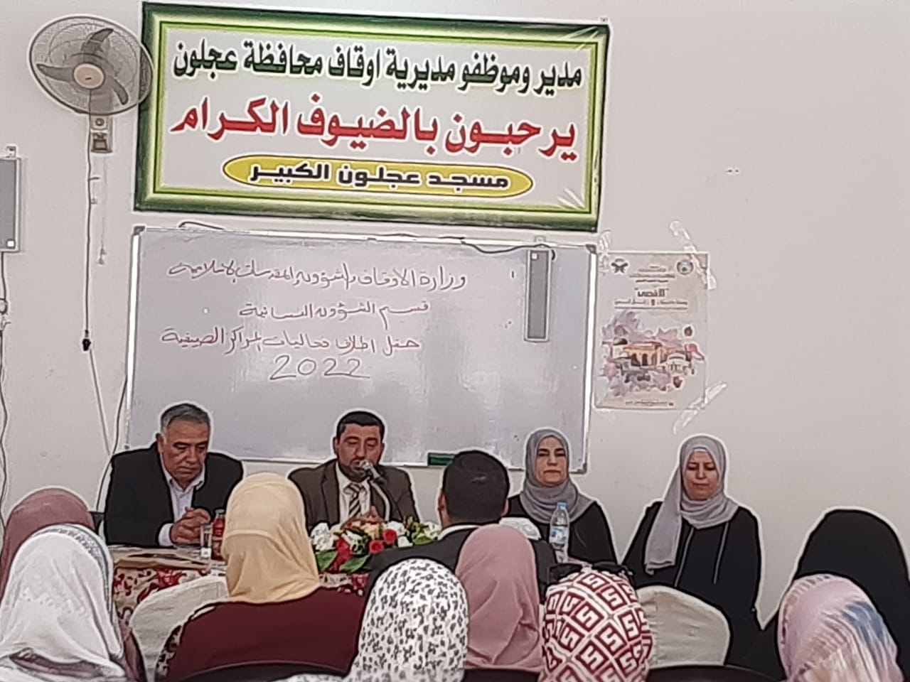 مندوبا عن محافظ عجلون قبلان الشريف رعى مدير أوقاف المحافظة الدكتور احمد الصمادي انطلاق فعاليات المراكز الصيفية لتعليم القران للطالبات في قاعة مسجد عجلون الكبير بحضور رئيس مجلس المحافظة عمر المومني ورئيسة قسم الشؤون النسائية بثينه المومني وعضو مجلس المحافظة الدكتورة سهيره المومني ومشرفات المراكز وعددهن 63 مركز ا .
