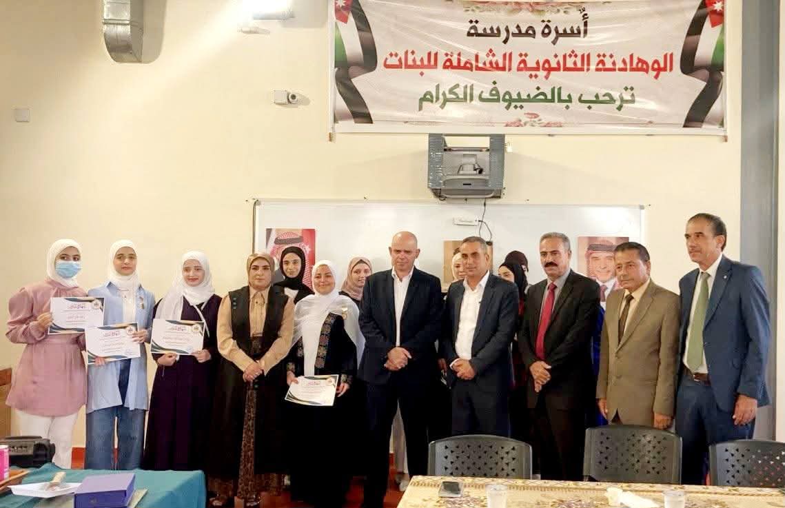 رعى مدير الشؤون التعليمية في مديرية التربية والتعليم لمحافظة عجلون الدكتور أويس الصمادي حفل تكريم طالبات الثانوية العامة المتفوقات في مدرسة الوهادنة الثانوية الشاملة للبنات في الفرعين العلمي والأدبي، بحضور رئيس شبكة التطوير التطوير التربوي لمنطقة الشفا يوسف العرود وأعضاء المجلس والمشرف التربوي أنطون بدر وأولياء أمور الطالبات.