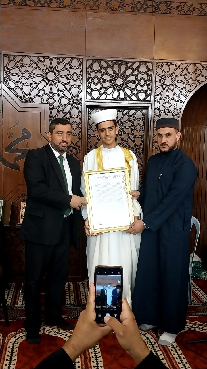 تحت رعاية فضيلة مدير مديرية أوقاف محافظة عجلون الدكتور أحمد محمود الصمادي أتم الطالب النجيب مهند علي حسن عنانزه ختمة كاملة بالسند الغيبي المتصل الى النبي صلى الله عليه وسلم بروايه حفص عن عاصم من طريق الشاطبية على الشيخ محمد عنانزه في دار القرآن الكريم في مسجد الشيخ مسلم/ عجلون والتي يشرف عليها الشيخ صهيب العبود .