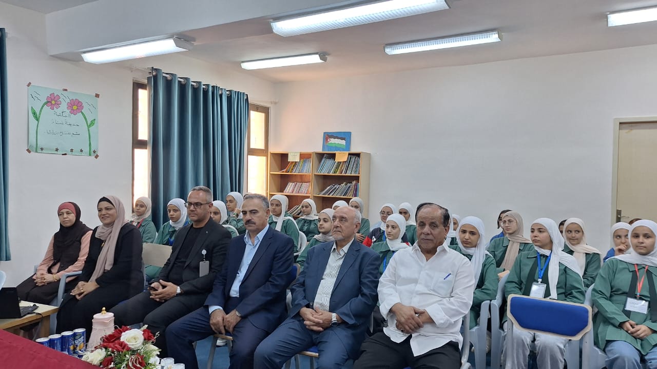 الصمادي يرعى ندوة بيئية ويفتتح معرض اغاني الأرض ( ثقافة زهره ) في مدرسة الراية الثانوية المختلطة .