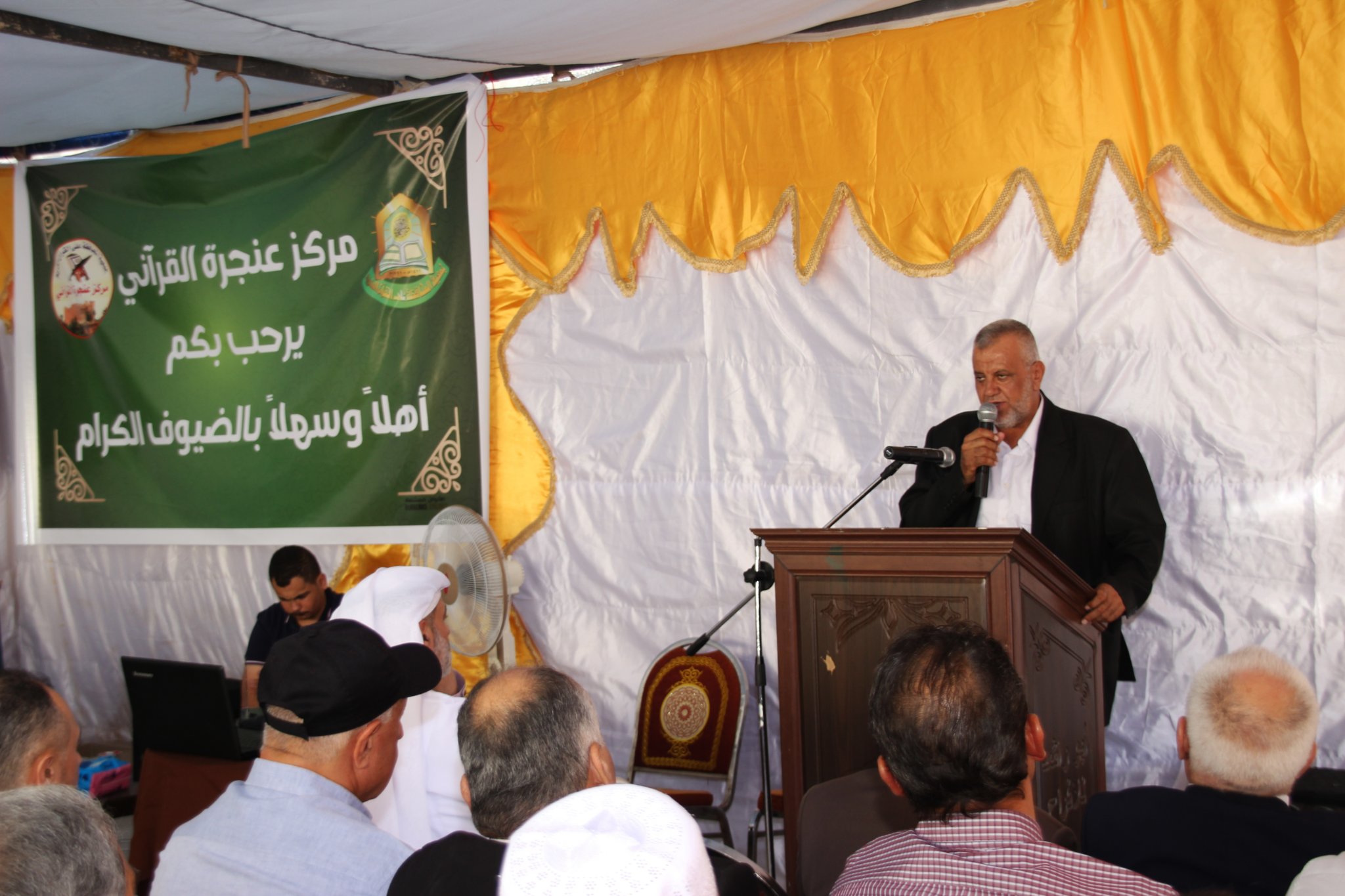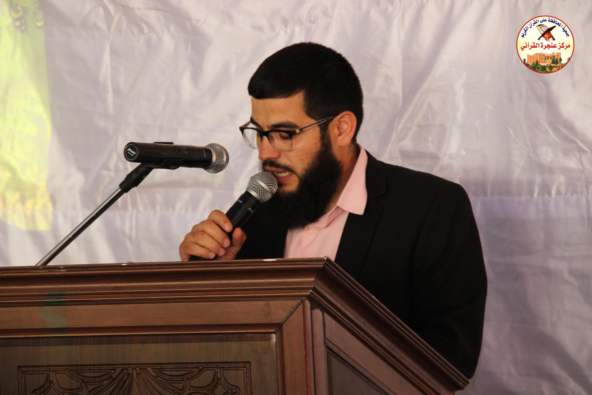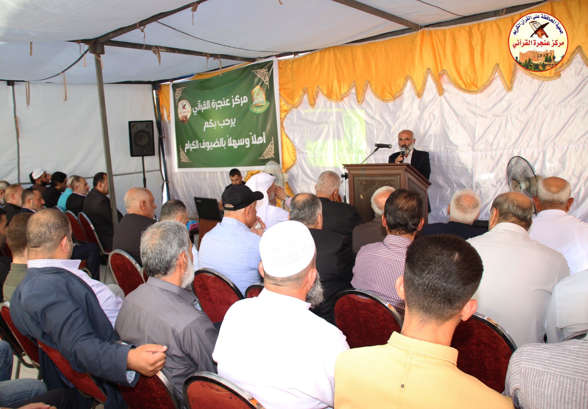 وفي بداية الحفل ألقى رئيس مركز عنجرة القرآني المهندس محمد حسين الزغول كلمة تحدث فيها عن الخدمات والأنشطة التي يقدمها مركز عنجرة القرآني للطلبة من حلقات ودورات والنادي الصيفي والنادي الدائم .