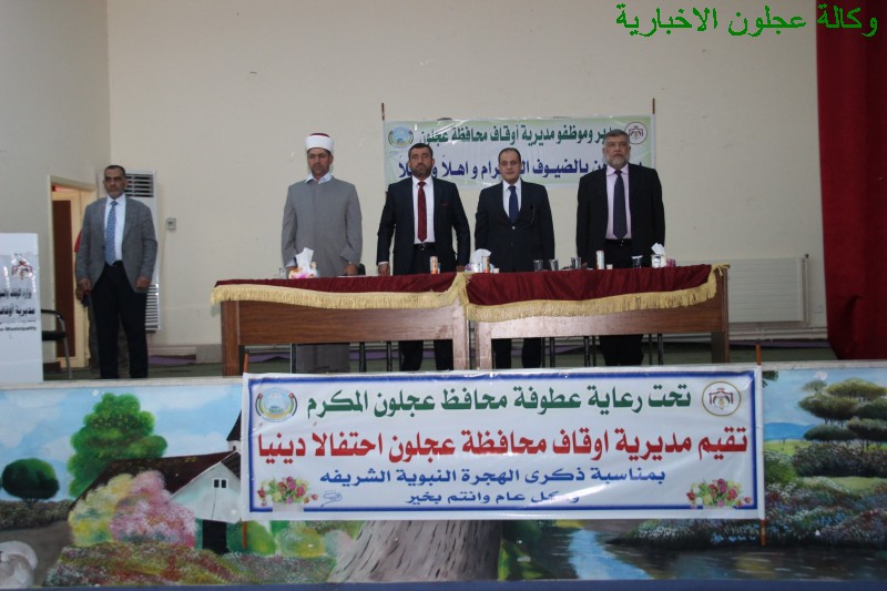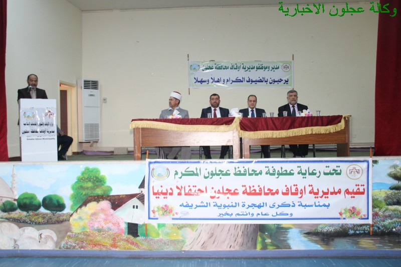 مندوبا عن محافظ محافظة عجلون الدكتور قبلان الشريف رعى نائب المحافظ/ متصرف لواء القصبة الدكتور هاشم العبداللات الإحتفال الذي أقامته مديرية أوقاف محافظة عجلون بمناسبة ذكرى الهجرة النبوية الشريفة في القاعة الهاشمية التابعة لبلدية عجلون .