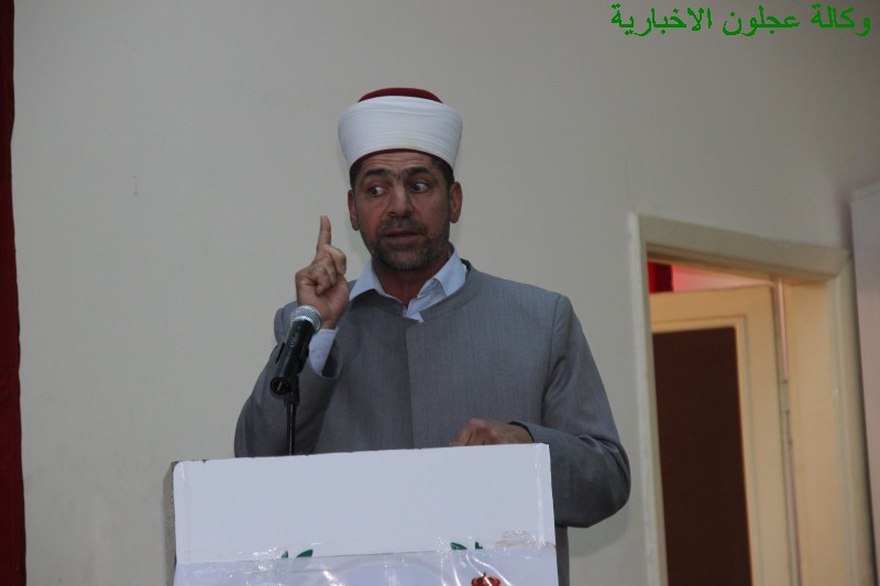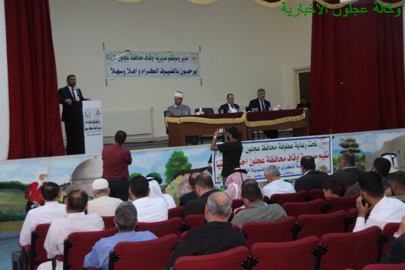 وابتدأ الإحتفال بآيات عطرة من القرآن الكريم تلاها الشيخ غسان القضاة. ومن ثم رحب مدير مديرية أوقاف محافظة عجلون الدكتور أحمد محمود الصمادي بعطوفة نائب المحافظ و فضيلة الدكتور حمزة بني عامر اذاعة/ أمن العام ومفتي محافظة عجلون الدكتور محمد بني طه و مدراء الدوائر والسادة الأئمة والمؤذنين والمواطنين.