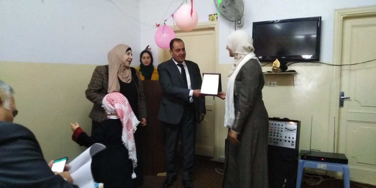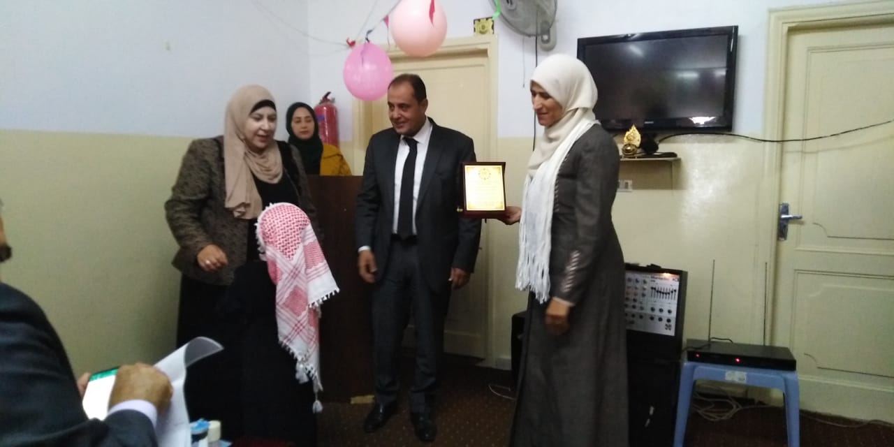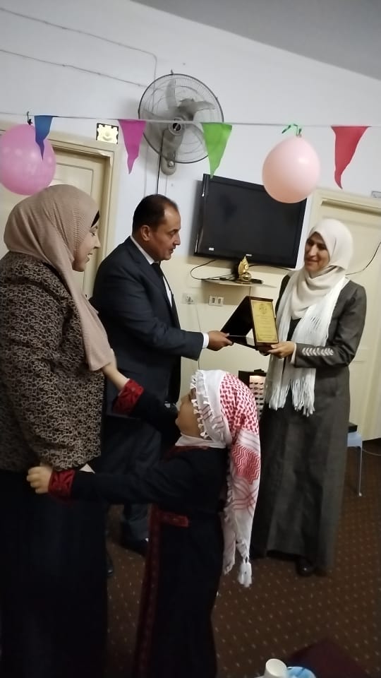 وفي نهاية الحفل قام راعي الحفل بتكريم المومني والغرايبة كما كرمت رئيسة الجمعيه باسمه أبو زيتون مساعد المحافظ .