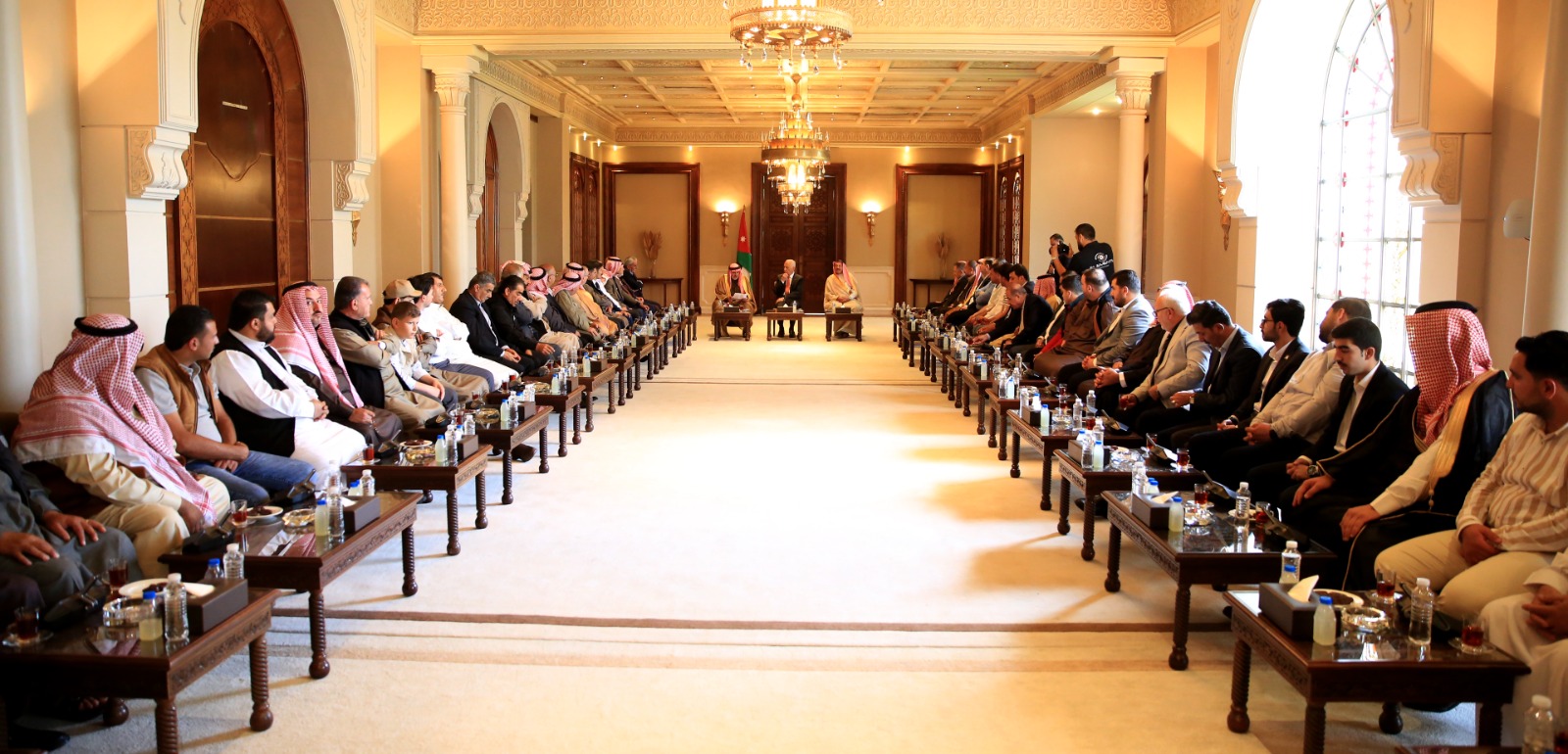 وفي مستهل لقائه بهم، في لقاءين منفصلين، بحضور مستشار جلالة الملك لشؤون العشائر، ناقلاً إليهم تحيات جلالة الملك واعتزازه وتقديره لمواقفهم الوطنية المشرّفة، مؤكداً أن التلاحم بين القيادة والشعب هو أساس صلابة الدولة الأردنية وركيزة قوتها في وجه التحديات.