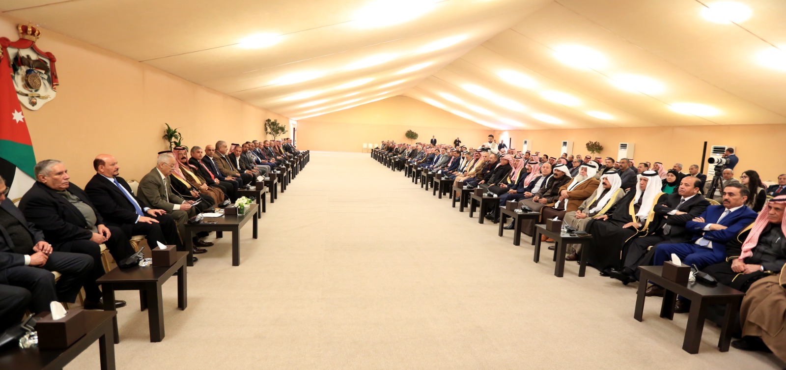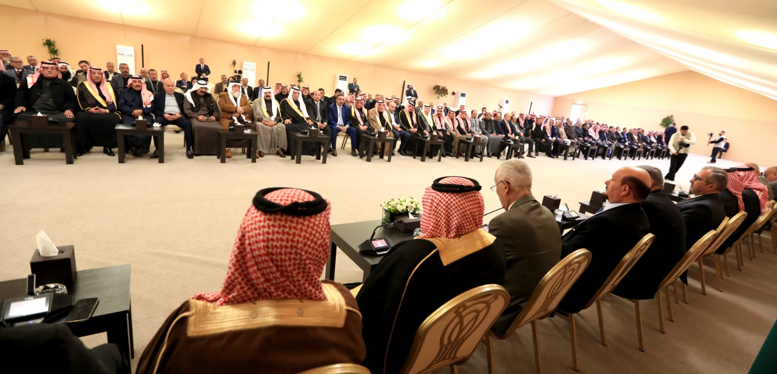 وحملت مضامين حديثهم وكلماتهم، رسالة حب ووفاء وفداء واعتزاز إلى جلالة الملك، وذلك خلال لقائهم رئيس الديوان الملكي الهاشمي يوسف حسن العيسوي، الذي استقبلهم في مضارب بني هاشم، ونقل لهم تحيات واعتزاز جلالة الملك بهم وبمواقفهم الوطنية الشجاعة ودورهم في مسيرة البناء والتحديث.