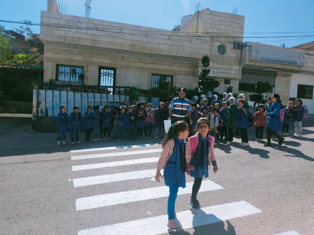 وقدم الفريحات شرحا مفصلا عن السلامة المرورية وكيفية عبور الطلبة للمدرسة بأمان وتنظيم المرور للسيارات داخل المدرسة وأمامها وتطبيق عملي على خطوات العبور الامن.