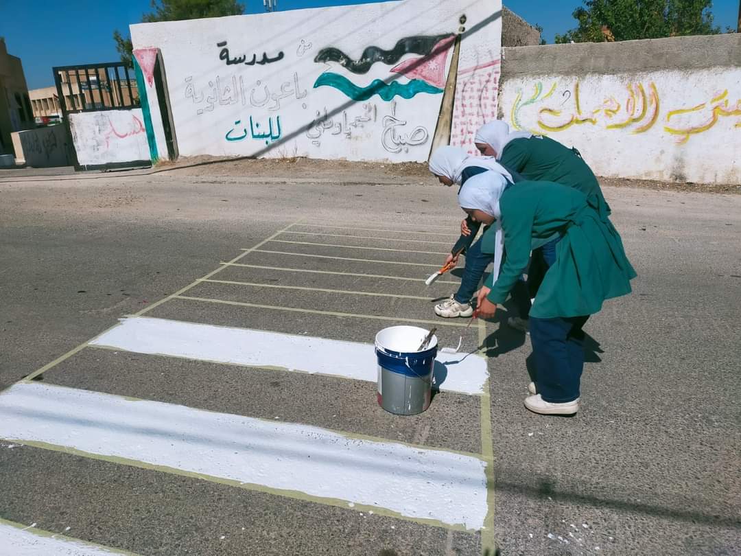 نفّذ المعهد المروري الاردني في مكتب ارتباط الشمال في مدرسة باعون الثانوية للبنات بمحافظة عجلون ممرات مشاة بالتعاون مع المدرسة والشرطة المجتمعية.